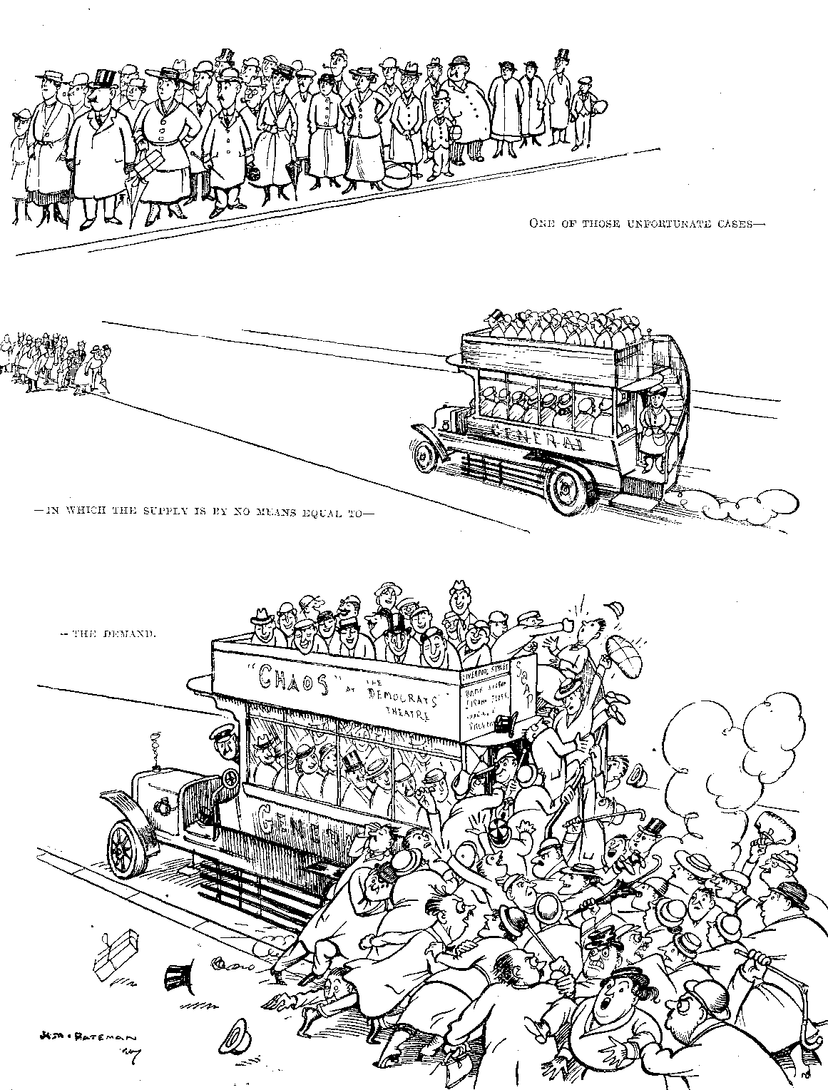 It was also settled that the crew of the governess-cart should have an early cold lunch and start an hour before the cars; thus (it was calculated) we should all arrive at the cricket-ground fairly well together. This did not take Haynes' driving into account. We started from the door at a very satisfactory pace, probably because Bucephalus, the fat pony, objected to the enthusiasm of our send-off. When we reached the road he dropped into an amble so gentle that we decided that he had really been running away in the drive. Next, taking advantage of an almost imperceptible upward slope, he began to walk. Haynes clucked at him and flapped the reins, but this had no effect beyond steering Bucephalus into the left-hand ditch.