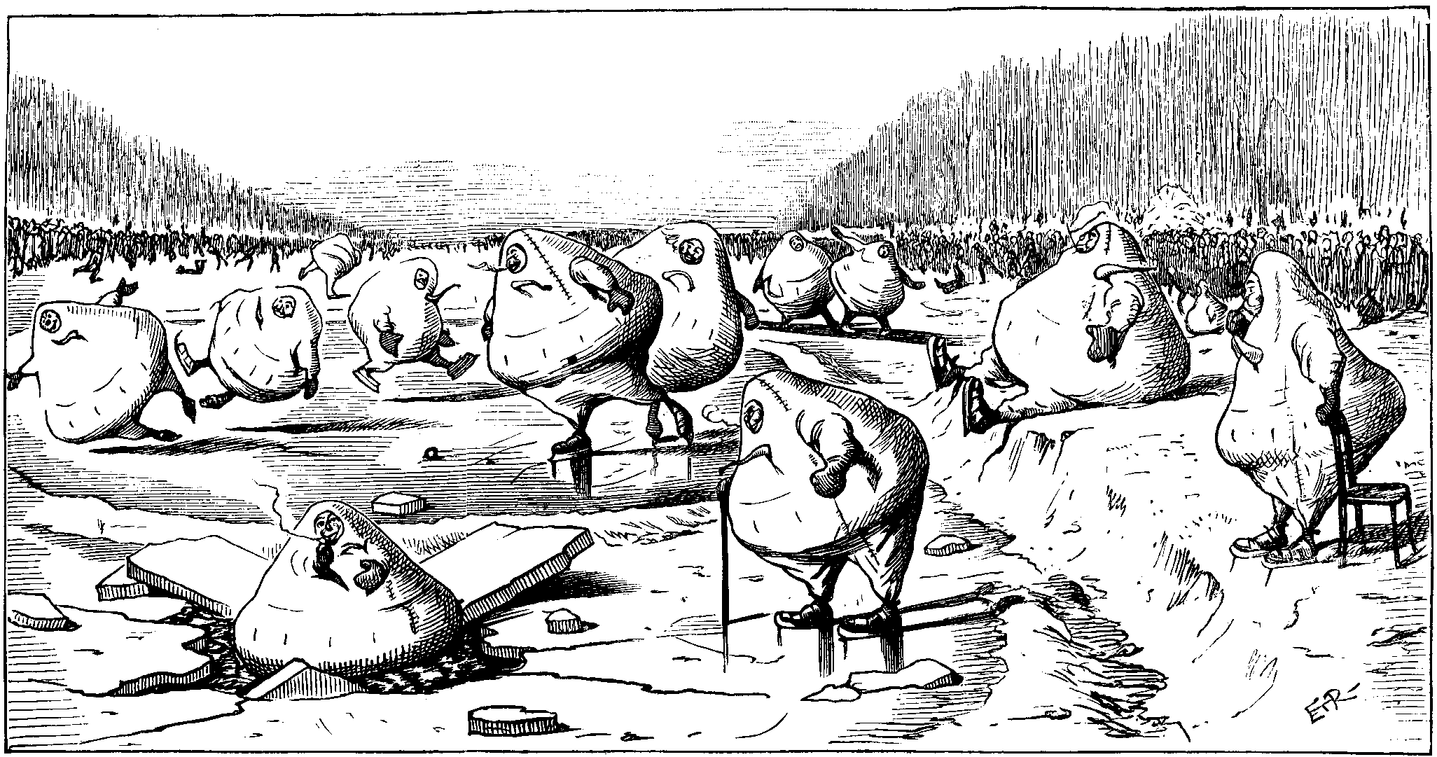 MICHAEL and FASON were both the sons of ORRORS. They were both Homeric, and both fell in love with GREEBA, who flirted outrageously with both. These coincidences are absolutely essential in a tale of simple human passions. But, to be short, GREEBA married MICHAEL, who had become First President of the second Icelandic Republic. Thus GREEBA and MICHAEL were at Reykjavik. FASON followed, spurred by a blind feeling of revenge. About this time Mrs. FATSISTER took a dislike to her husband.