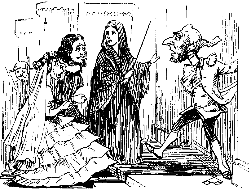 There is an excellent orchestra here, playing the musical game of "follow my leader" to perfection, and kept together, as sheep, by a CROOK. Mr. HARRY MONKHOUSE is very droll in the little he has to do. Mr. SHALE's speech as the Court Painter is capitally given, but there isn't enough of it. A touch more, a few more good lines, and the speech, as a showman's speech, would have been encored. Mr. S. SOLOMON as Jenkins, the Hall Porter, is made up so as to be the very fac-simile of THACKERAY's own illustration, and to reproduce that Master's sketches with more or less exactitude has evidently been the aim of all the actors; but Jenkins has been peculiarly successful, as has also Prince Bulbo, of whom more anon. As Polly in Act the First, and General Punchikoff in the Second, Miss EMPSIE BOWMAN was delightful, and her elder sister, Miss ISA BOWMAN, made every sharp point tell, and into the gold, of which success the name of BOWMAN is of good omen: and this is almost a rhyme. The part of Prince Giglis, in the absence of Miss VIOLET CAMERON, was satisfactorily rendered by Miss FLORENCE DARLEY. Miss MAUD HOLLAND looked and acted prettily as the Princess Angelica, and Madame AMADI was quite Thackerayan in her make-up as Countess Gruffanuff. Miss ATTALIE CLAIRE entered fully into the spirit of the merry piece; her rendering of a song with the refrain "Ah! well-a-day!" being deservedly encored.