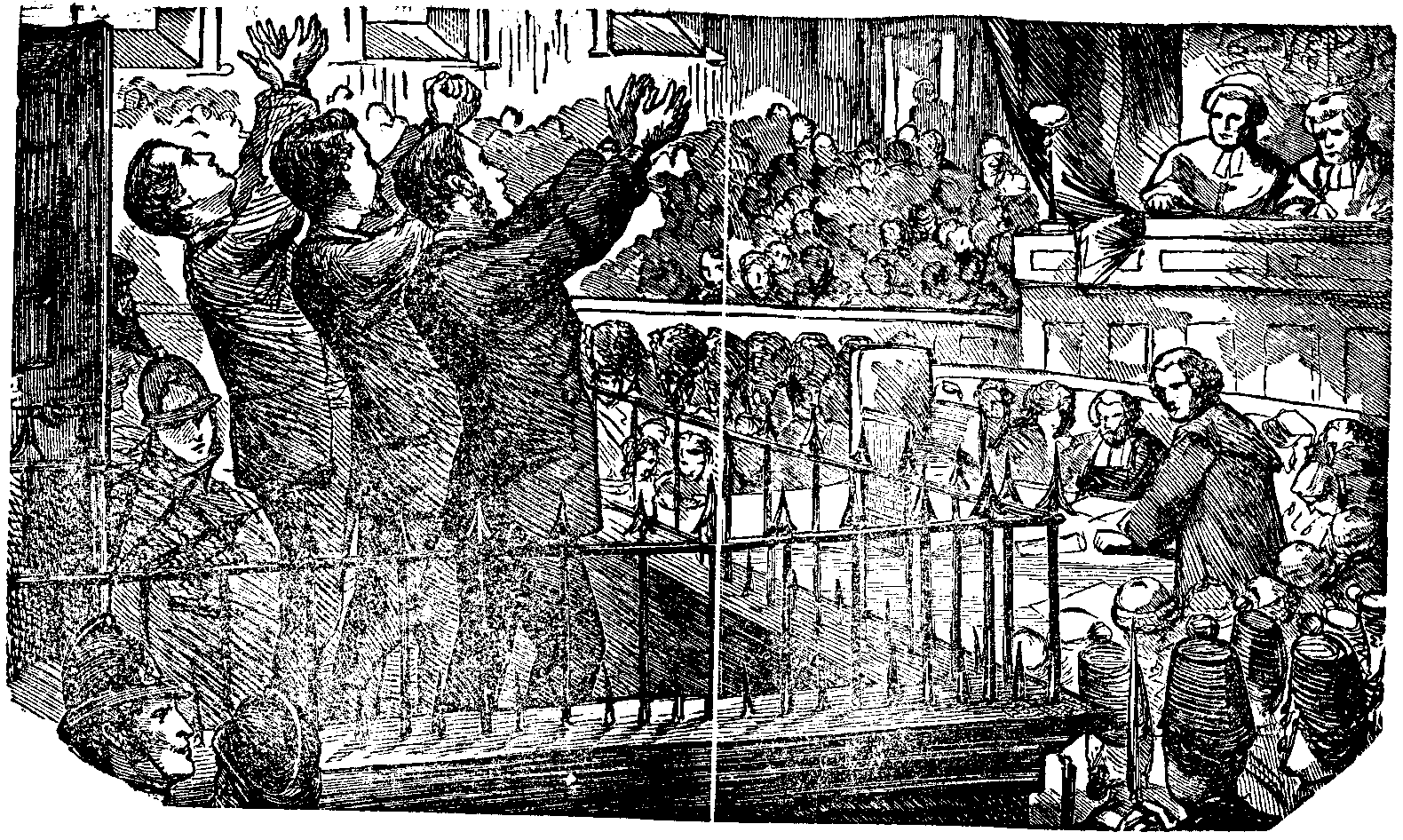 The murmur died away; the sobs that rose from the dark recesses where a few stricken-hearted women had been permitted to stand were stifled; and then, amidst breathless silence, the voice of the Crown Clerk was heard demanding "if the prisoners had anything to say why sentence of death should not be pronounced on them."