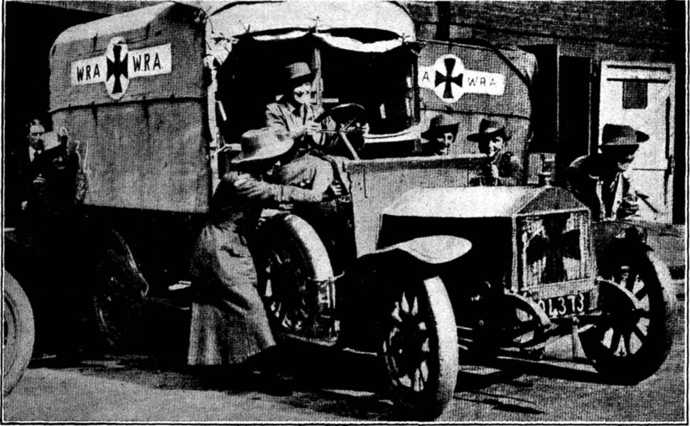 Our actions speak louder than any words can ever do, and the record of our women's sacrifices and work stand as great silent witnesses to our spirit. There is nothing we have been asked to do that we have not done and we have initiated great pieces of work ourselves. The hardest time was in the beginning when we waited for our tasks, feeling as if we beat stone walls, reading our casualty lists, receiving our wounded, caring for the refugees, doing everything we could for the sailor and soldier and his dependants, helping the women out of work, but feeling there was so much more to do behind the men—so very much more—for which we had to wait. We did all the other things faithfully and, so far as we could, prepared ourselves and when the tasks came, we volunteered in tens of thousands, every kind of woman, young, old, middle-aged, rich and poor, trained and untrained, and today we have 1,250,000 women in industry directly replacing men, 1,000,000 in munitions, 83,000 additional [pg 21] women in Government Departments, 258,300 whole and part-time women workers on the land. We are recruiting women for the Women's Army Auxiliary Corps at the rate of 10,000 a month and we have initiated a Women's Royal Naval Service. We have had the help of about 60,000 V.A.D.'s (Voluntary Aid Detachment of Red Cross) in Hospitals in England and France, and on our other fronts, in addition to our thousands of trained nurses.