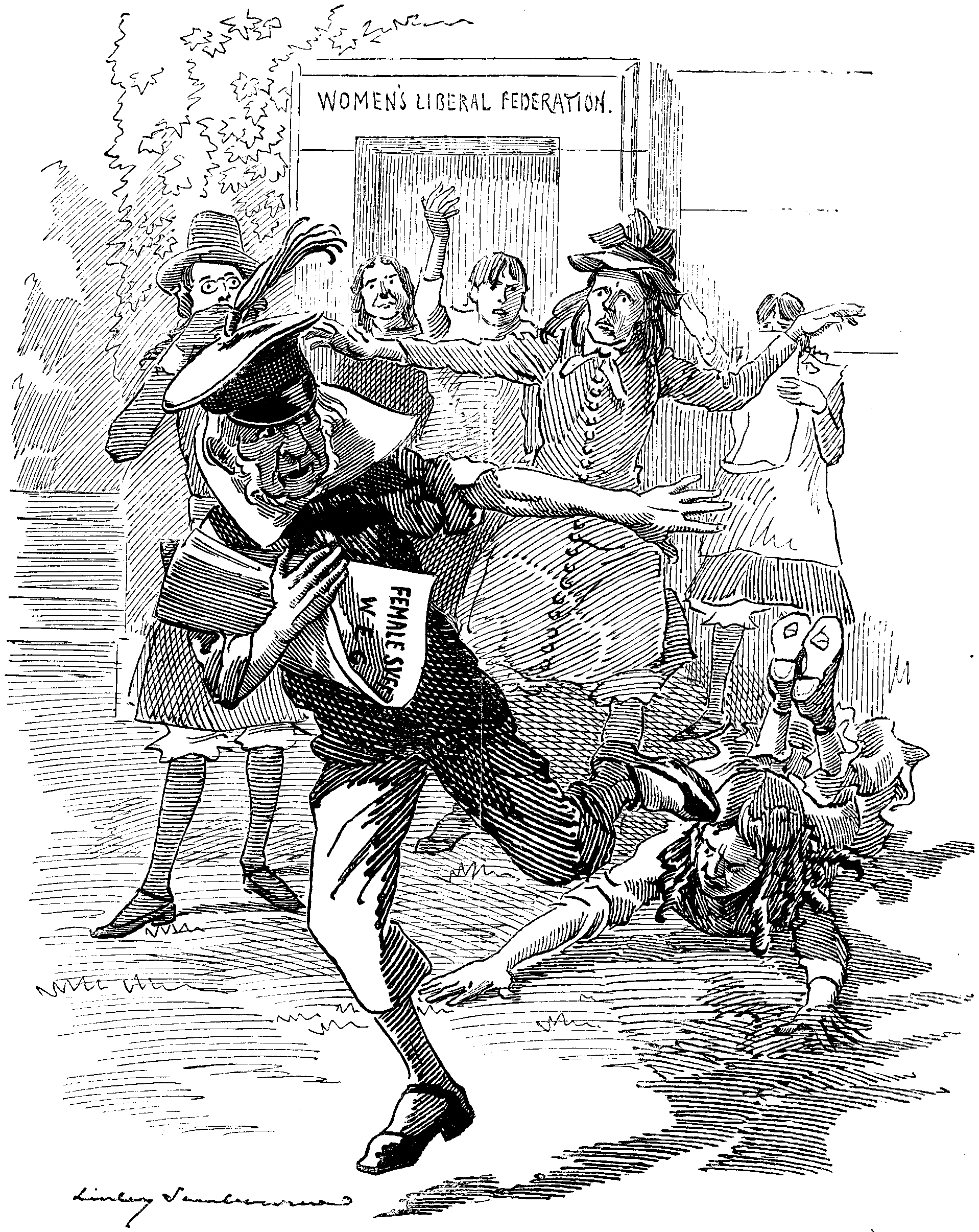 In the Street—about 11:30 P.M.—Back from Variety Theatre. Hotel doors closed. Have rung several times—no result at present. Curious impression that I shall be hauled up before a Dean or somebody for this to-morrow and fined or gated. Wish they'd let me in—chilly out here. Is there a night-porter? If not—awkward. Carillon again from Cathedral tower. Ghost has managed to recollect a whole tune at last, picking it out with one finger. Seem to have heard it before—what the Dickens is it? Recognise it as the "Mandolinata in E." Remember the VOKES Family dancing to it long ago in the Drury Lane Pantomime. Not exactly the tune one would expect to meet in a Cathedral.... Unbolting behind doors. Nervous feeling. Half inclined to assure Porter penitently that this shall not occur again. Wish him good-night instead—pleasantly. Porter grunts—unpleasantly. Depressing to be grunted at the last thing at night. To bed, chastened.
