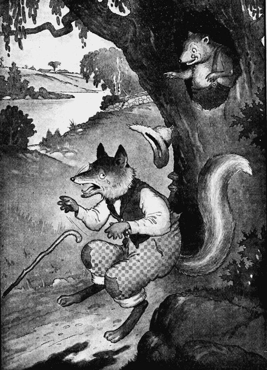 So Happy Jack sat outside on a branch of the hollow tree where his old storehouse was and scolded, and called Unc' Billy Possum names, and jerked his tail angrily with every word he said. And Unc' Billy Possum sat in the doorway of the hollow tree and showed his teeth to Happy Jack and said unpleasant things. It really was very dreadful the way those two did talk.