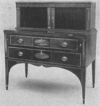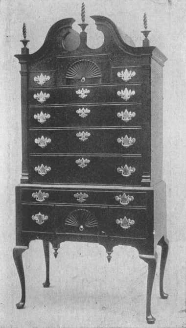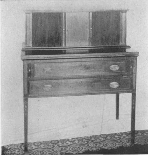 The handles used were of various kinds, the favorite being the drop from a round or star-shaped boss. The furniture was beautifully polished but did not have a bright gloss.