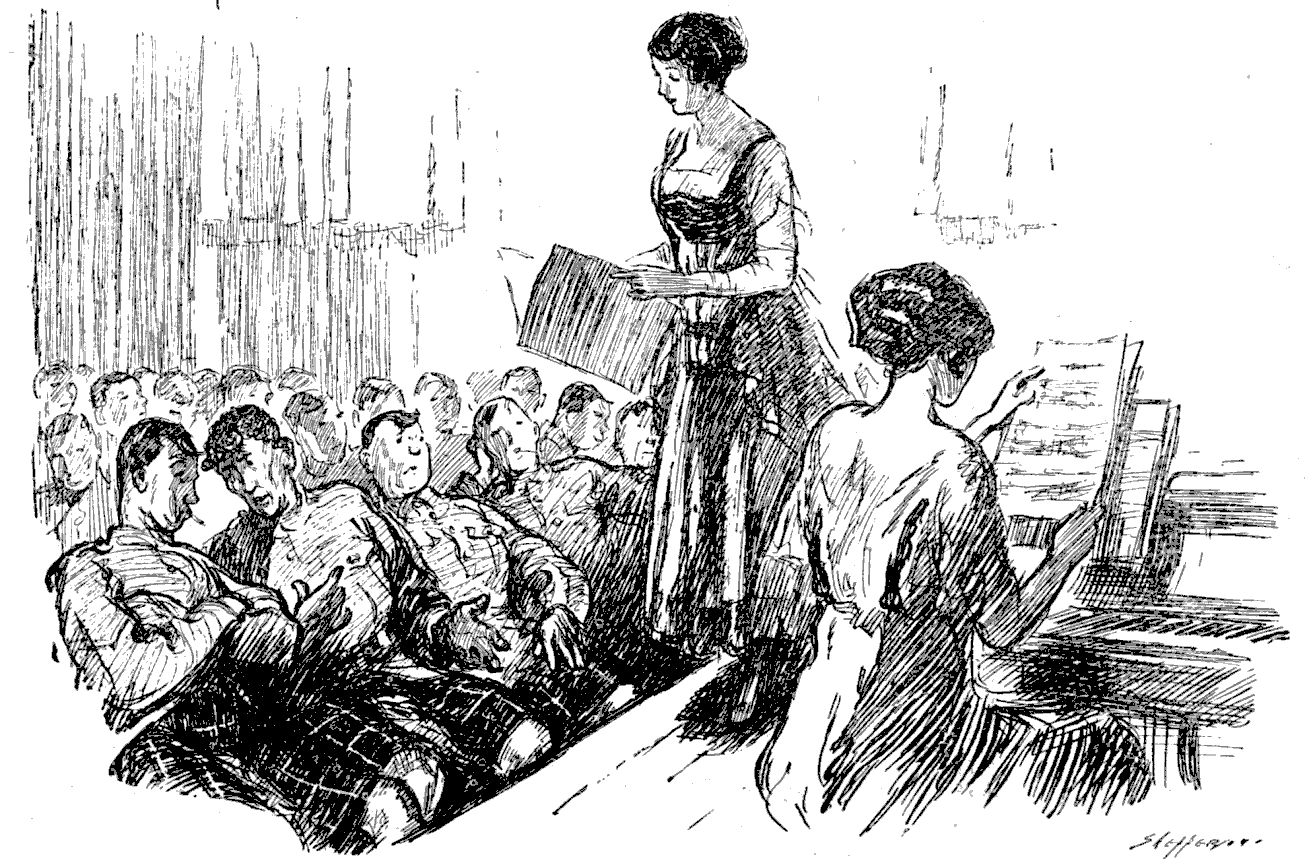 Jock (to his neighbour). "A FINE VOICE, YON LASSIE. I'VE HEARD WORSE AN' PAID FOR IT."