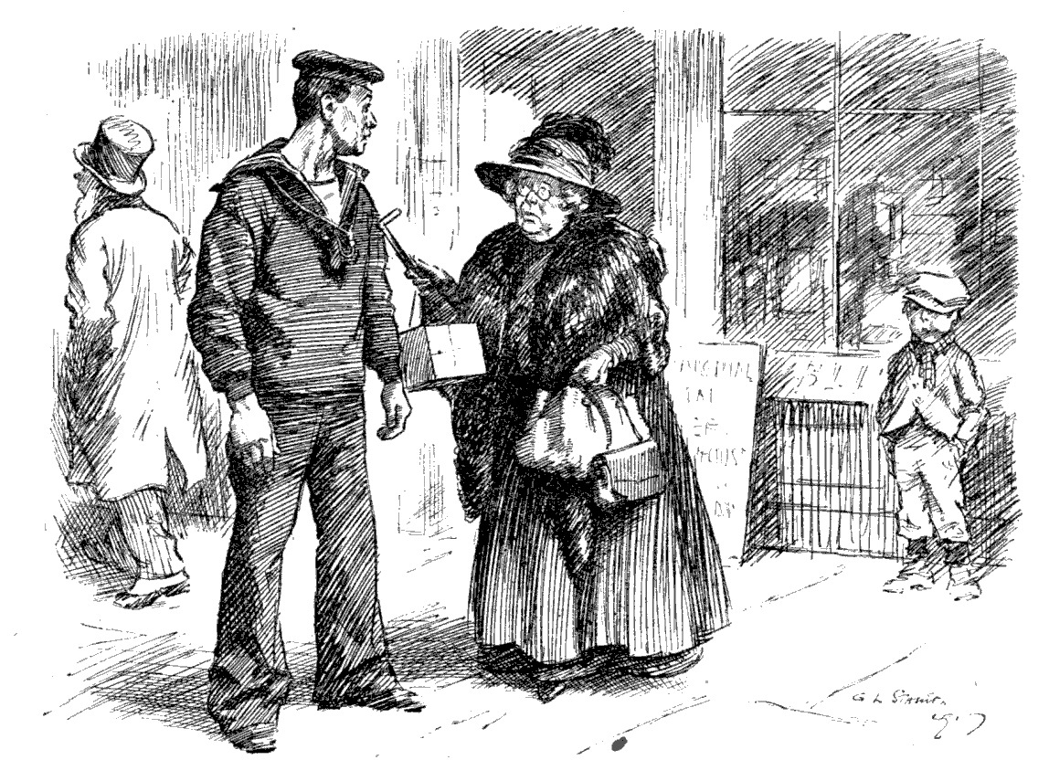 "You have lost the privilege of serving on the last grand jury during the War," said the judge at the London Sessions last week to a shipowner who arrived at the court late. We understand that the poor fellow broke down and sobbed bitterly.