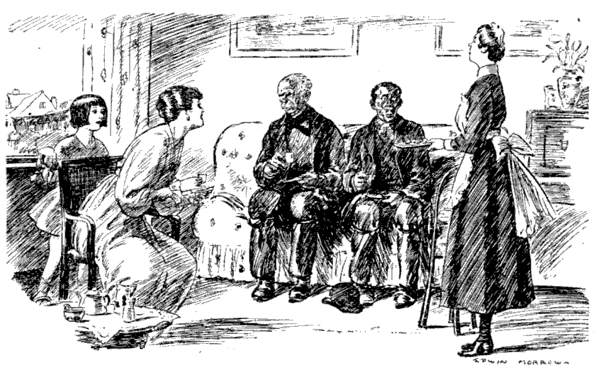 But the matter was settled that night. When the dinner-gong sounded, Binny and Joe rose from their arm-chair, looked at the vegetarian dishes now adorning a board which had been wont to send up savoury meaty steams (fish in these parts has become a rarity almost unprocurable, and we had exhausted our allowance of meat at luncheon, which we had taken at a restaurant), and then, with noses in the air and tails erect, stalked haughtily to the drawing-room, and there remained until dinner was finished.