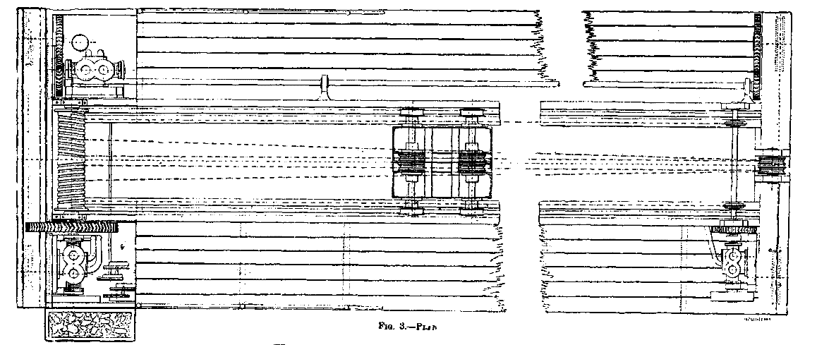I should like to see the trace and guide chariots on the same line of rails, one below the other, were this possible without producing the bad effect of a skew, pull or push.