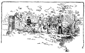The Water Wheel. Surveying for the Water Wheel. Towers for the Water Wheel. The Wheel. The Buckets. The Paddles. The Receiving Trough. Setting Up the Towers. Mounting the Water Wheel. Cooling the Filter Barrel. The Canvas Bucket. Mr. Halliday’s Water Wheel. | |