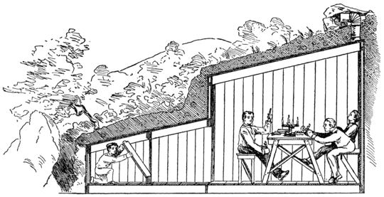 Foundation of Log Cabin. A Logging Expedition. The Log Raft. The Sail-Rigged Raft. Building the Log Cabin. The Roof of the Log Cabin. Door and Window Frames. The Fireplace. The Proper Way to Build a Stone Wall. The Floor of the Cabin. The Door Hinges and Latch. The Window Sash. Bunks. Stopping up the Chinks. | |