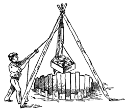 Water wheel towers, setting up, 248
