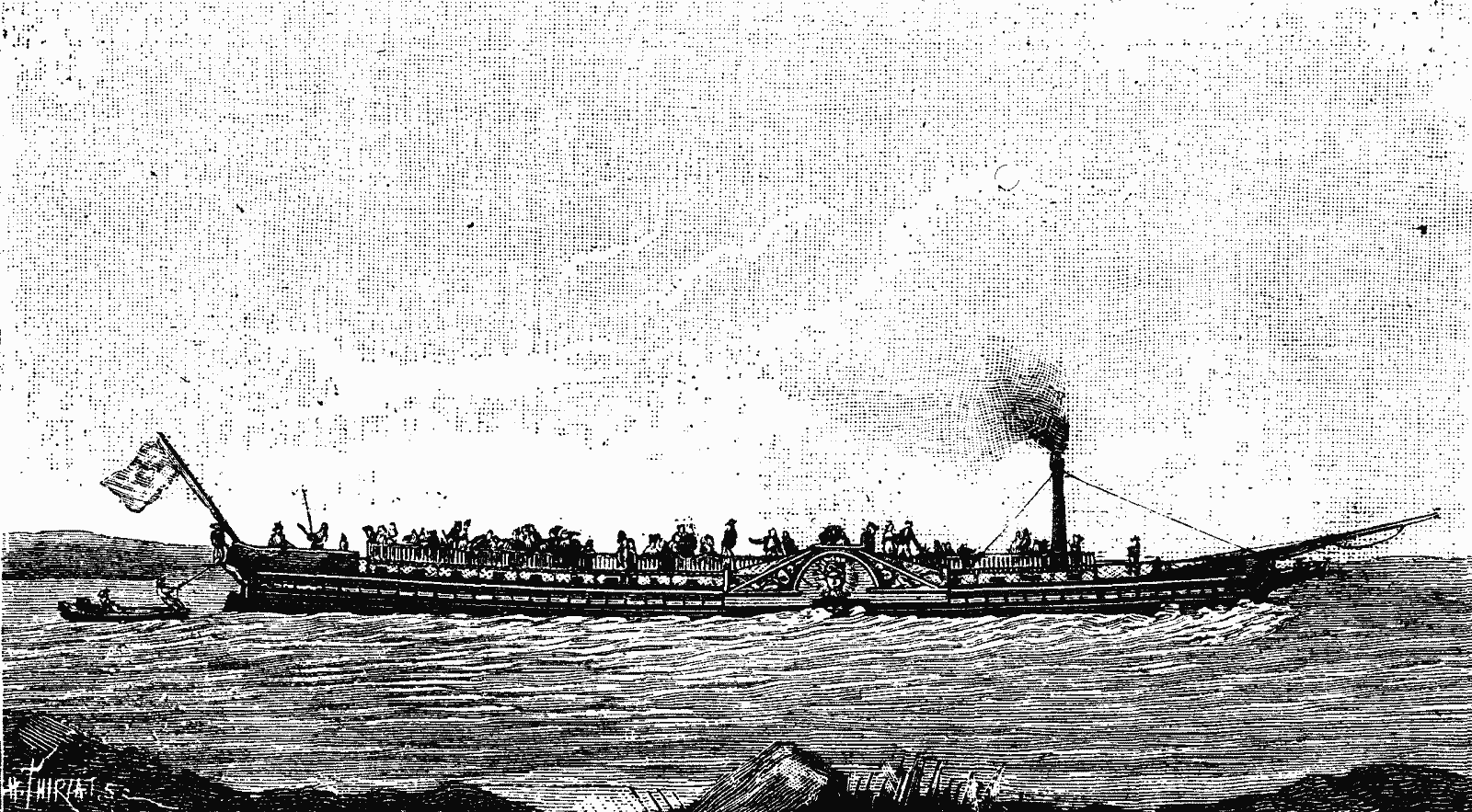 The accompanying engraving represents the remarkable steamboat that the unfortunate Marquis de Jouffroy constructed at Paris in 1816, after organizing a company for the carriage of passengers on the Seine. De Jouffroy, as well known, made the first experiment in steam navigation at Lyons in 1783, but the inventor's genius was not recognized, and he met with nothing but deception and hostility. With the obstinacy of men of conviction, he did not cease to prosecute his task. He assuredly had an inkling of the future in store for the invention that he was offering to humanity.