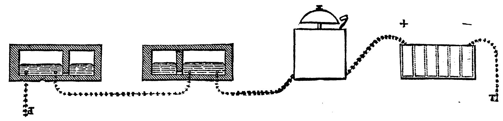 In his communication to the Nuovo Cimento, Dr. Pacinotti states that the reasons which induced him to construct the apparatus on the principle which we have just described, were: (1) That according to this system the electric current is continuously traversing the coils of the armature, and the machine is kept in motion not by a series of intermittent impulses succeeding one another with greater or less rapidity, but by a constantly acting force producing a more uniform effect. (2) The annular form of the revolving armature contributes (together with the preceding method of continuous magnetization) to give regularity to its motion and at the same time reduces the loss of motive power, through mechanical shocks and friction, to a minimum. (3) In the annular system no attempt is made suddenly to magnetize and demagnetize the iron core of the rotating armature, as such changes of magnetization would be retarded by the setting up of extra currents, and also by the permanent residual magnetism which cannot be entirely eliminated from the iron; and with this annular construction such charges are not required, all that is necessary being that each portion of the iron of the ring should pass, in its rotation, through the various degrees of magnetization in succession, being subjected thereby to the influence of the electro-dynamic forces by which its motion is produced. (4) The polar extension pieces of the fixed electro-magnet, by embracing a sufficiently large number of the iron projecting pieces on the armature ring, continue to exercise an influence upon them almost up to the point at which their magnetization ceases when passing the neutral axis. (5) By the method of construction adopted, sparks, while being increased in number, are diminished in intensity, there being no powerful extra currents produced at the breaking of the circuit, and Dr. Pacinotti points out that when the machine is in rotation a continuous current is induced in the circuit which is opposed to that of the battery; and this leads to what, looked at by the light of the present state of electric science, is by far the most interesting part of Dr. Pacinotti's paper, published, as it was, more than seventeen years ago.