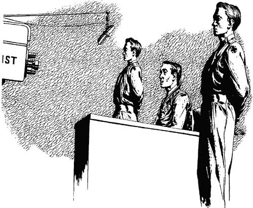 Literate First Class Elliot C. Mongery, revealed by a quick left quarter-turn of the pickup camera, wore the same starchy white smock, the same Sam Browne belt glittering with the badges of the organizations and corporations for whom he was authorized to practice Literacy. The tablet on his belt, Pelton knew, was really a camouflaged holster for a small automatic, and the gold stylus was a gas-projector. The black-leather-jacketed bodyguards, of course, were discreetly out of range of the camera. Members of the Associated Fraternities of Literates weren't exactly loved by the non-reading public they claimed to serve. The sight of one of those starchy, perpetually-spotless, white smocks always affected Pelton like a red cape to a bull. He snorted in disdain. The raised eyebrow toward the announcer on the left, the quick, perennially boyish smile, followed by the levelly serious gaze into the camera—the whole act might have been a film-transcription of Mongery's first appearance on the video, fifteen years ago. At least, it was off the same ear of corn.