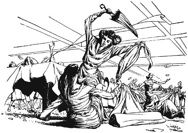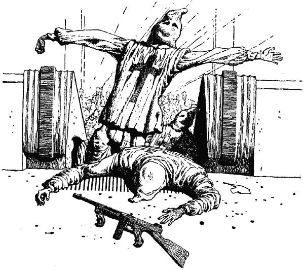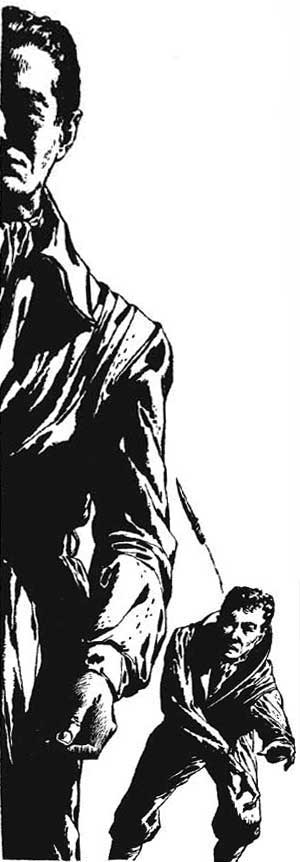 With a soft thud, the big man dropped down from the guard's cubicle overhead, grinning cheerfully. He needed a shave—Yetsko always did, in the mornings—and in his leather Literates' guard uniform, he looked like some ogreish giant out of the mythology of the past.