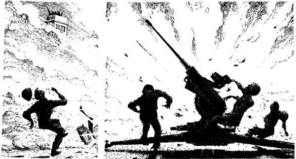 "On the world scene: You'll be glad to hear that the survivors of the wrecked strato-rocket have all been rescued from the top of Mount Everest, after a difficult and heroic effort by the Royal Nepalese Air Force.... The results of last week's election in Russia are being challenged by twelve of the fourteen parties represented on the ballot; the only parties not hurling accusations of fraud are the Democrats, who won, and the Christian Communists, who are about as influential in Russian politics as the Vegetarian-Anti-Vaccination Party is here.... The Central Diplomatic Council of the Reunited Nations has just announced, for the hundred and seventy-eighth time, that the Arab-Israel dispute has been finally, definitely and satisfactorily settled. This morning's reports from Baghdad and Tel Aviv only list four Arabs and six Israelis killed in border clashes in the past twenty-four hours, so maybe they're really getting things patched up, after all. During the same period, there were more fatalities in Newer New York as a result of clashes between the private troops of rival racket gangs, political parties and business houses.