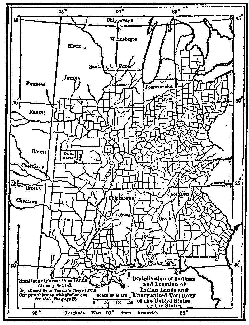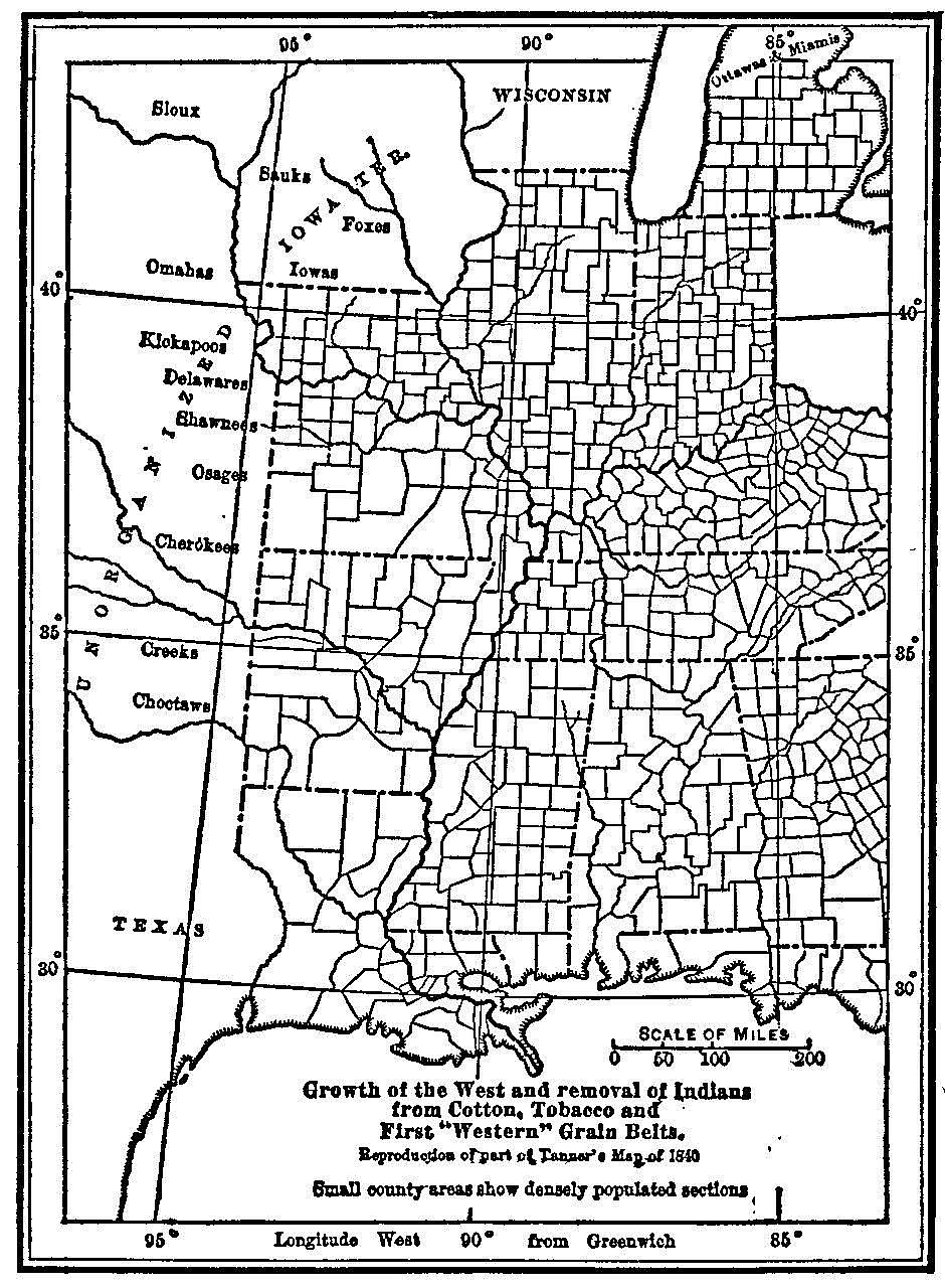This Indian problem which Jackson would have to solve was of the utmost importance to all the region from Georgia to northwestern Louisiana, for in that region lived the ambitious and prosperous cotton planters, who were bent on getting possession of all the fertile lands of their section, and the legislatures of Alabama and Mississippi followed the example of Georgia in assuming jurisdiction over all Indians within their boundaries. Jackson entertained no tender scruples about dispossessing the natives, a fact which was well known and widely advertised. When, therefore, Crawford, who had been very popular with the planters of all the South, gave up his antagonism to the Tennessee candidate, and joined with the friends of Calhoun, whom Crawford hated only a little more than he had disliked Jackson, there was no substantial resistance in any of the States, from South Carolina to Louisiana. The way was preparing for a united South and West.
