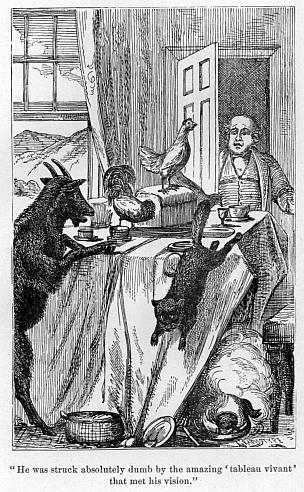“But milk implies cream, my dear,” interposed the merchant, “and buttermilk implies butter, and both imply cows, which are strong presumptive evidence in favour of beef. Besides—”