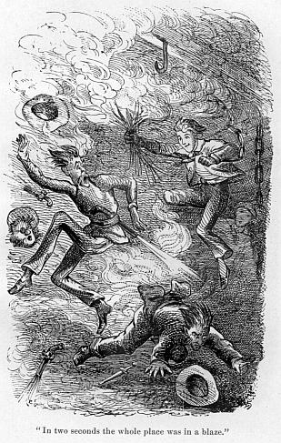 At this moment the door burst open, and the “darling boy” rushed into the room—with a wild cheer of defiance at his nurse, from whom he had escaped, and who was in full pursuit—hit his head on the corner of the table, and fell flat on the floor, with a yell that might have sent a pang of jealousy to the heart of a Chippeway Indian!