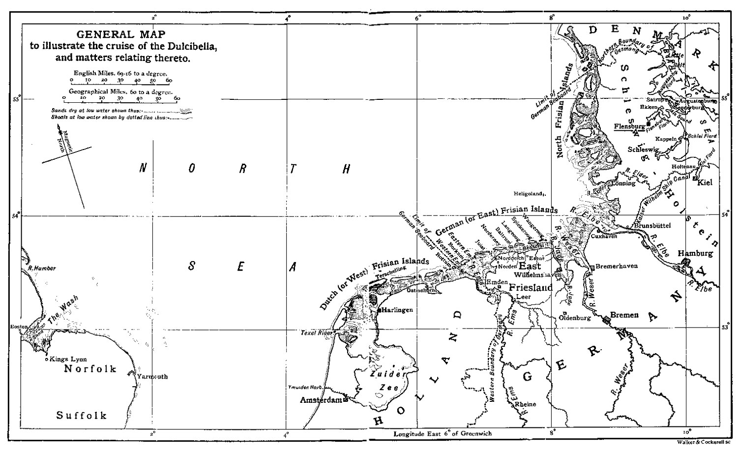 That evening, after threading the maze of shoals between the Dutch mainland and islands, we anchored off the little hamlet of Ostmahorn, [See Map A] gave the yacht in charge of some astonished fishermen, and thence by road and rail, hurrying still, gained Harlingen, and took passage on a steamer to London. From that point our personal history is of no concern to the outside world, and here, therefore, I bring this narrative to an end.