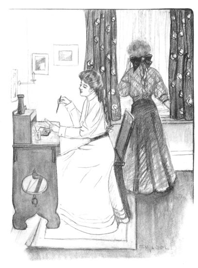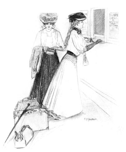 Meanwhile on that Saturday morning Bea and Lila, silent and shy, had crowded with their two hundred classmates into chapel. The two friends sat side by side. Lila was in terror of making some horrible blunder that 12 might overwhelm her with a vast indefinite disgrace. She leaned forward in the pew, the pencil trembling between her fingers, the blood pounding in her ears, while from the platform in front a cool voice read on evenly through page after page of names. And then at last the tragic despair of finding that she had jotted down herself for two sections in English and none in Latin! When she managed to gasp out the awful situation in Bea’s ear, that young person looked worried for full half a minute. It was a very serious thing to be a freshman. Then her cheery common sense came to the rescue.