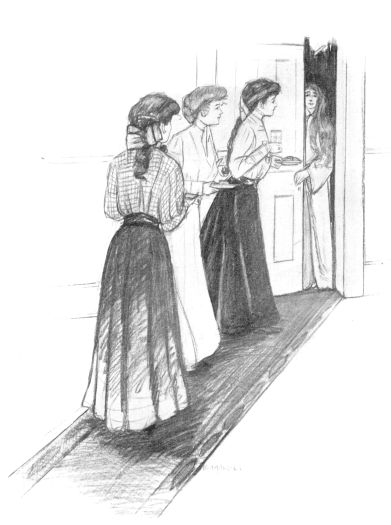 The second letter, written the following day, said that a freshman named Beatrice Leigh had come up to help her unpack. Beatrice had a long braid too, and her hair was the loveliest auburn and curled around her face, and she laughed a good deal. Lila had noticed her the very first evening. She was sitting at one of the tables in the middle of the big dining-room. When Lila saw her, she was giggling with her head bent down and her napkin over her eyes, while the other girls at that table smiled amused smiles. Lila knew instantly that this poor freshman had done something dreadful, and she was sorry for her. Later that same evening in Miss Merriam’s room she told how she had marched in to dinner alone and plumped down at that table among all those seniors. She seemed to consider it a joke, but Lila was sure she had been almost mortified to death when she learned of her mistake, and that was why she had laughed 11 so hard. Several other freshmen were at Miss Merriam’s. Two of them were named Roberta, and one was named Gertrude something. But Lila liked Beatrice best. Miss Merriam called her Bea. Miss Merriam was a junior who had invited in all the students at that end of the corridor to drink chocolate. Lila did not care for her much, because she had a loud voice and tipped back in her chair and said yep for yes.