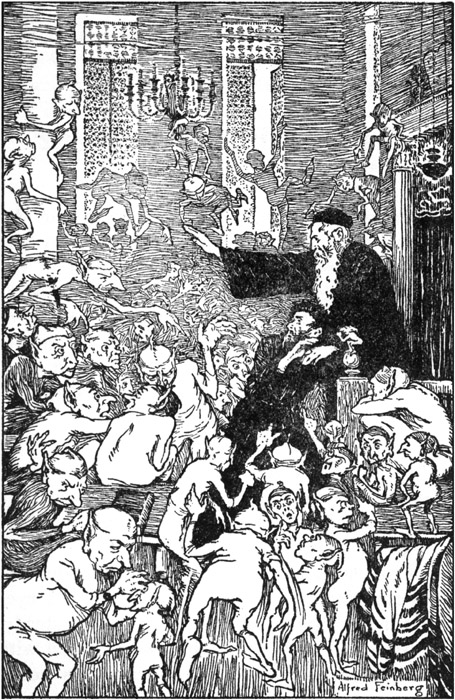 A strange crowd of demons of all shapes and sizes poured into the synagogue with threatening gestures 36
