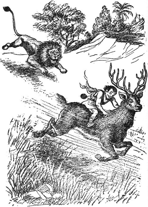 Behind him a fierce roar indicated that the lion was in pursuit 172