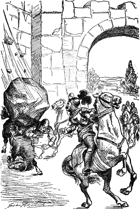 He heard a cry of alarm and saw a huge stone fall on the soldier riding behind him 194