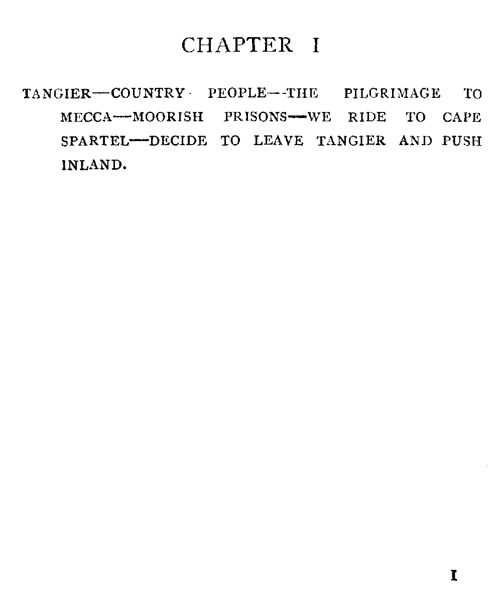 Chapter I | Tangier—Country People—The Pilgrimage to Mecca—Moorish Prisons—We Ride to Cape Spartel—Decide to Leave Tangier and Push Inland | 1 |