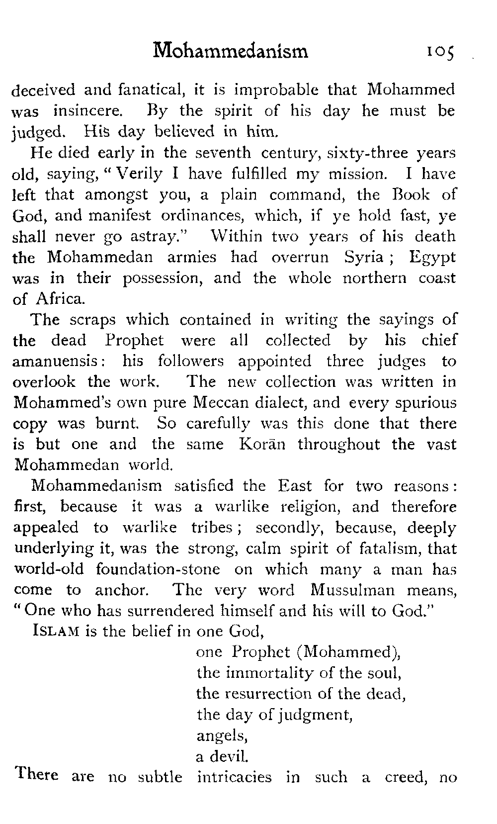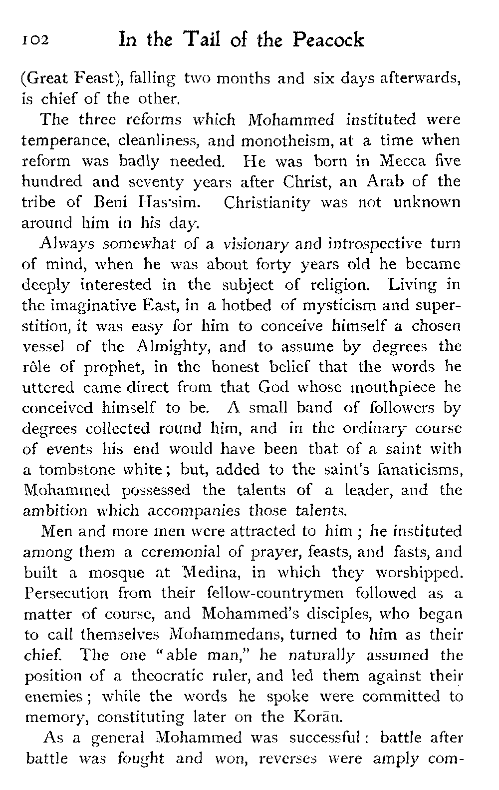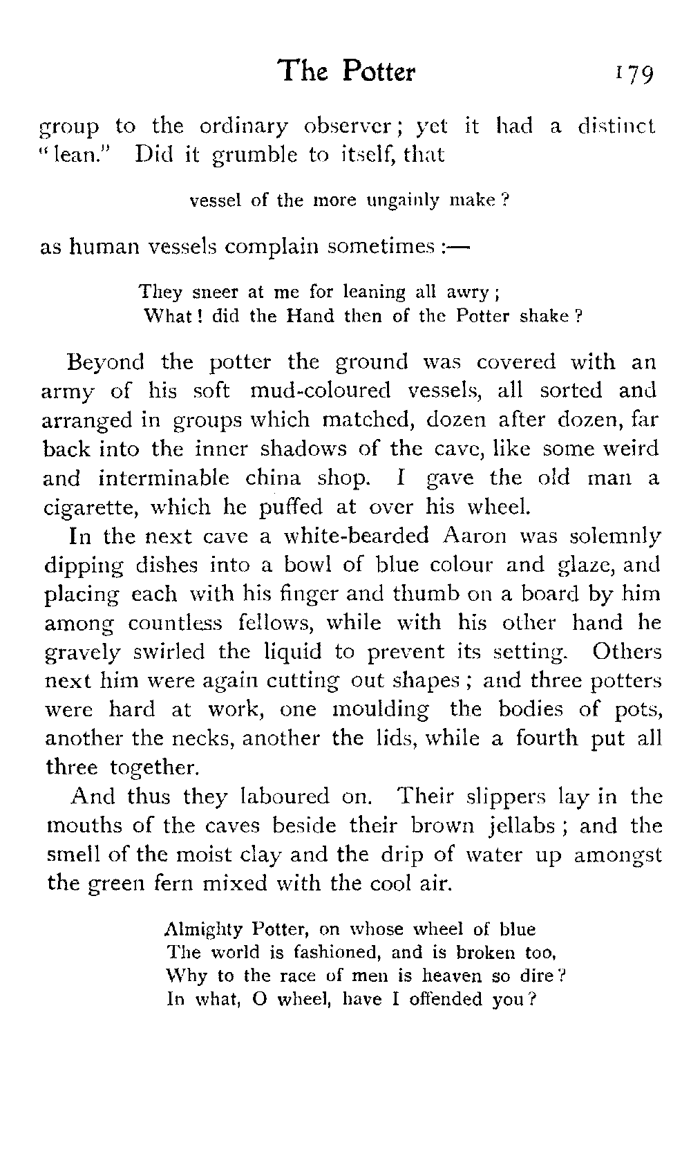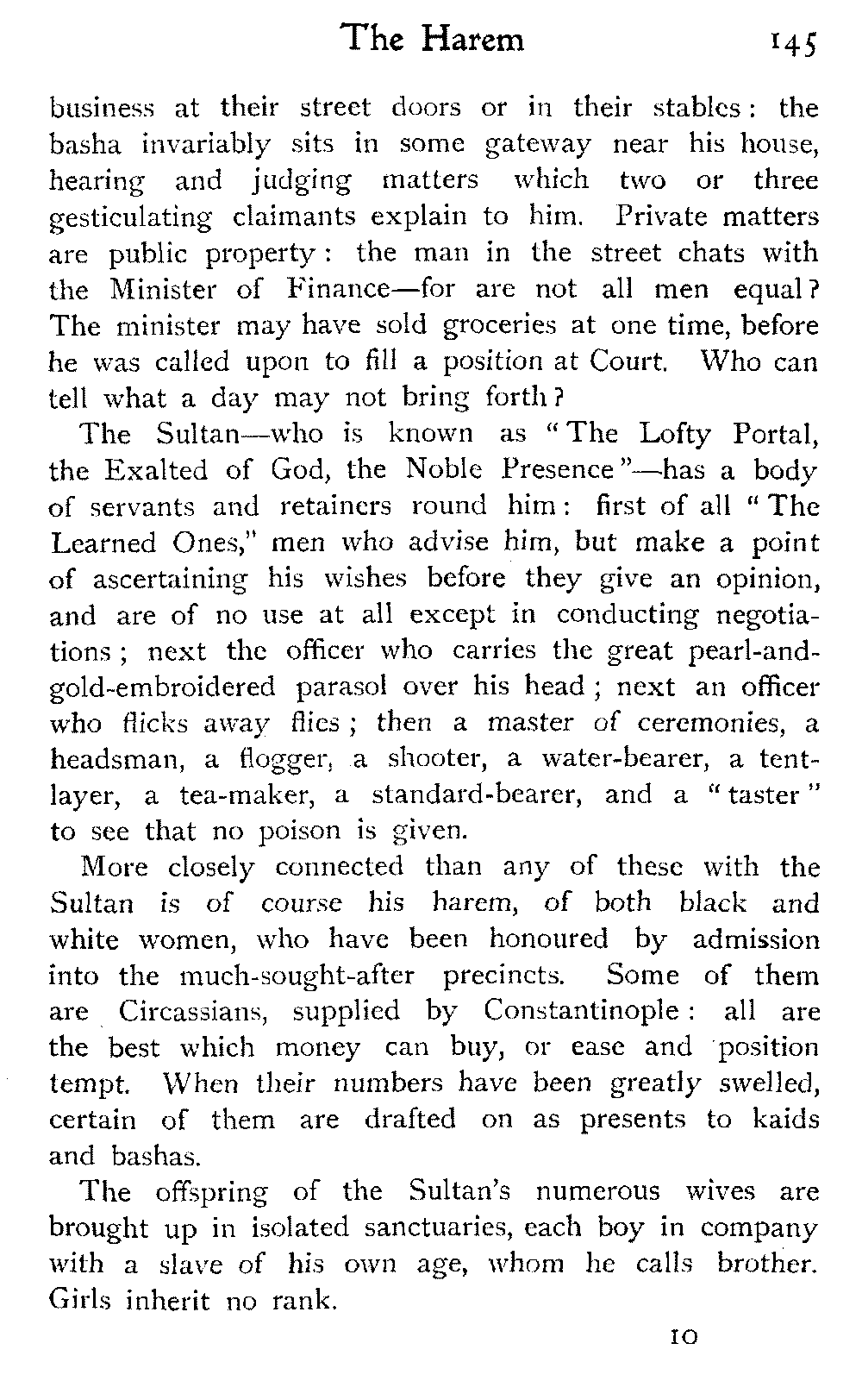 The vague and hazy ideals which the white light of an English upbringing relegates to dreamland and dismisses as idle fancies, rise up in the glare of African sunlight, alive, tangible, unashamed; the things that are, not the things that might be:—the vivid colouring, the hot crowding, the stately men and veiled women, the despotism and stoicism, the unchanging picturesqueness of the Thousand and One Nights, the dramatic inevitability of the Old Testament.—A. J. D.