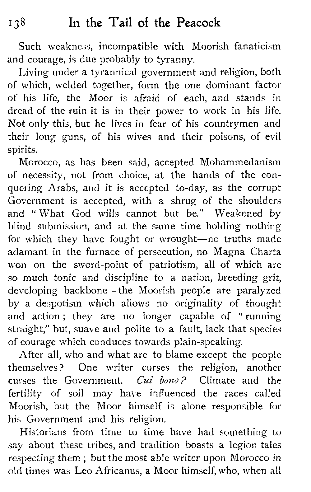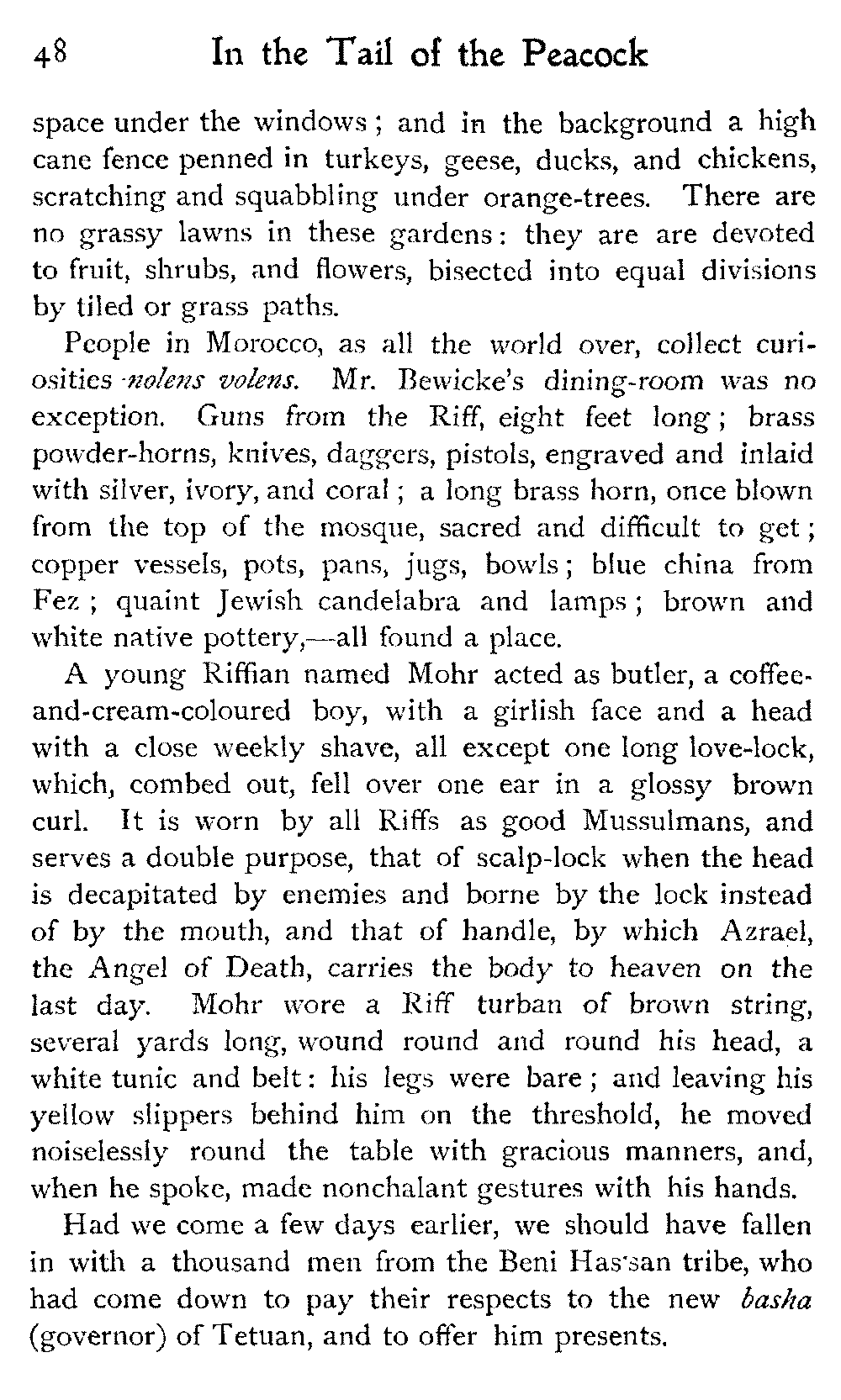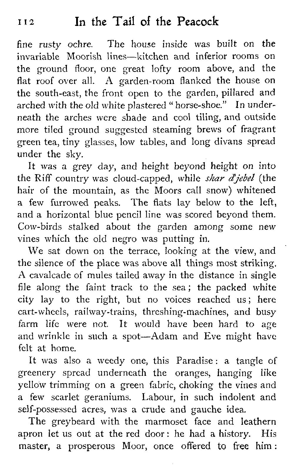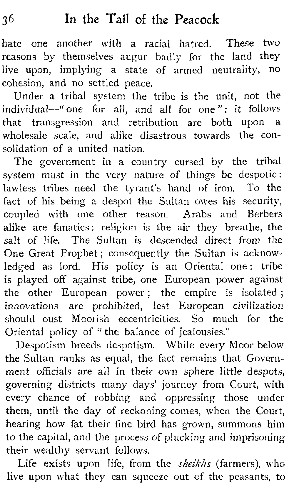 After all, argues the Moor, who could wish to alter Morocco? Is it not perfect as it is?—veritably, "the tail of the peacock," the sun of the universe!