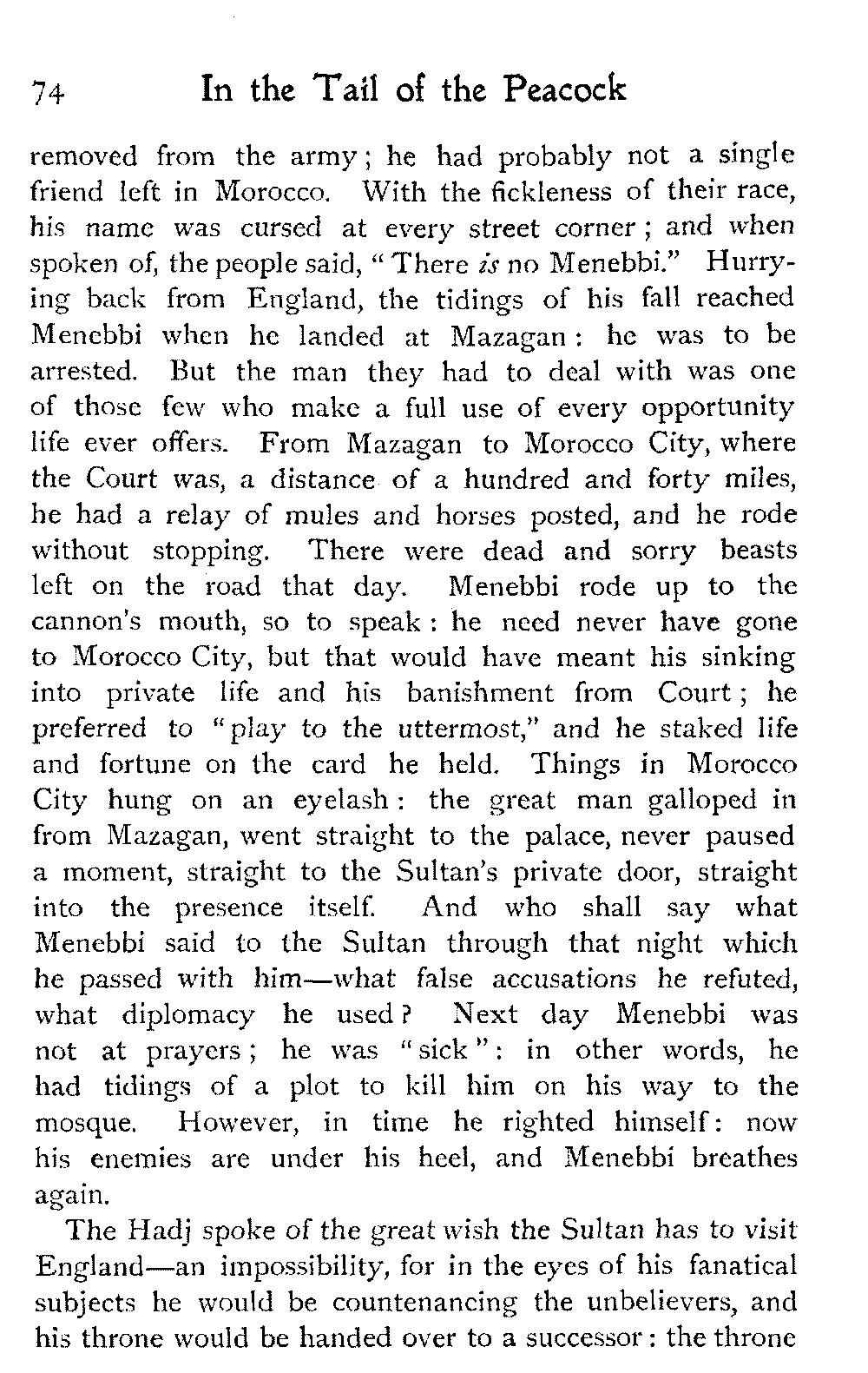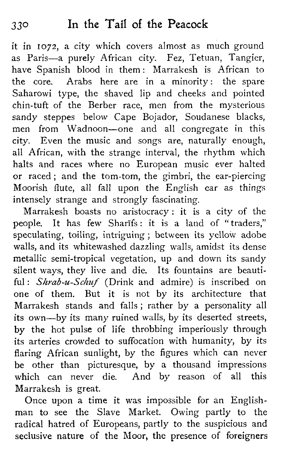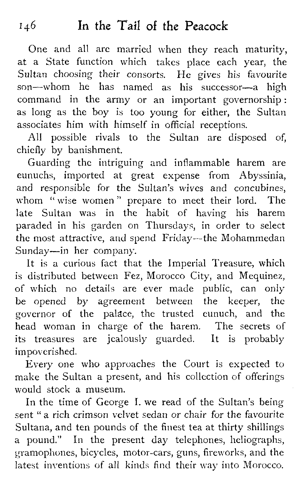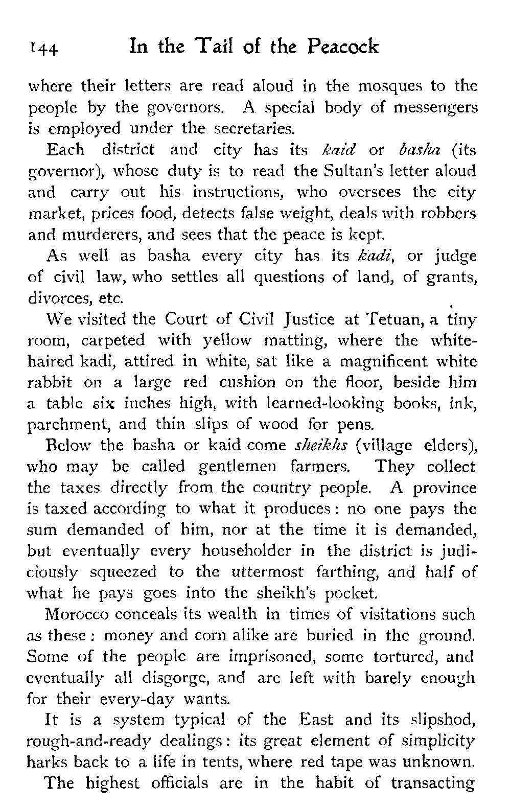 After all, argues the Moor, who could wish to alter Morocco? Is it not perfect as it is?—veritably, "the tail of the peacock," the sun of the universe!