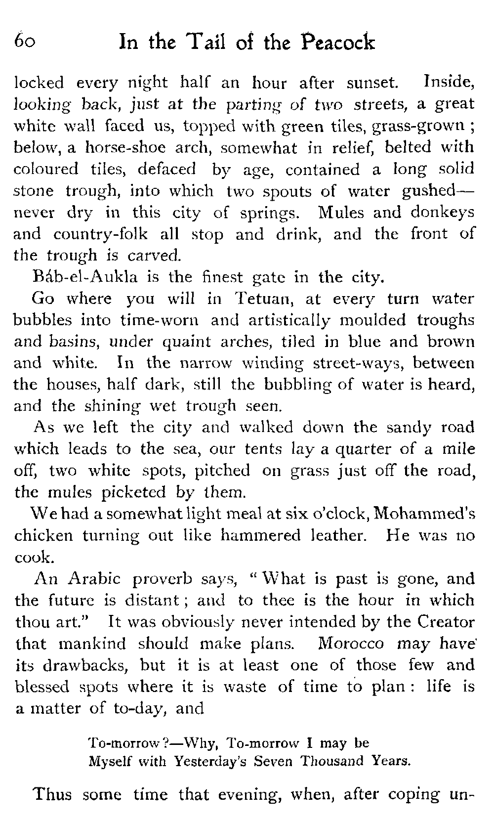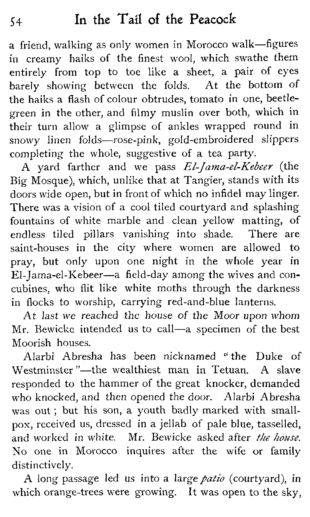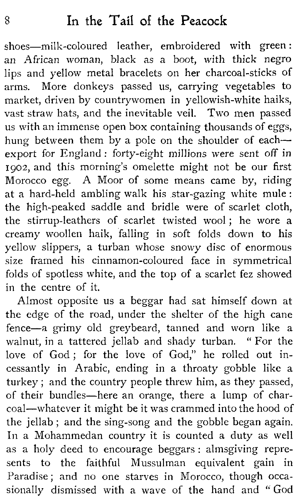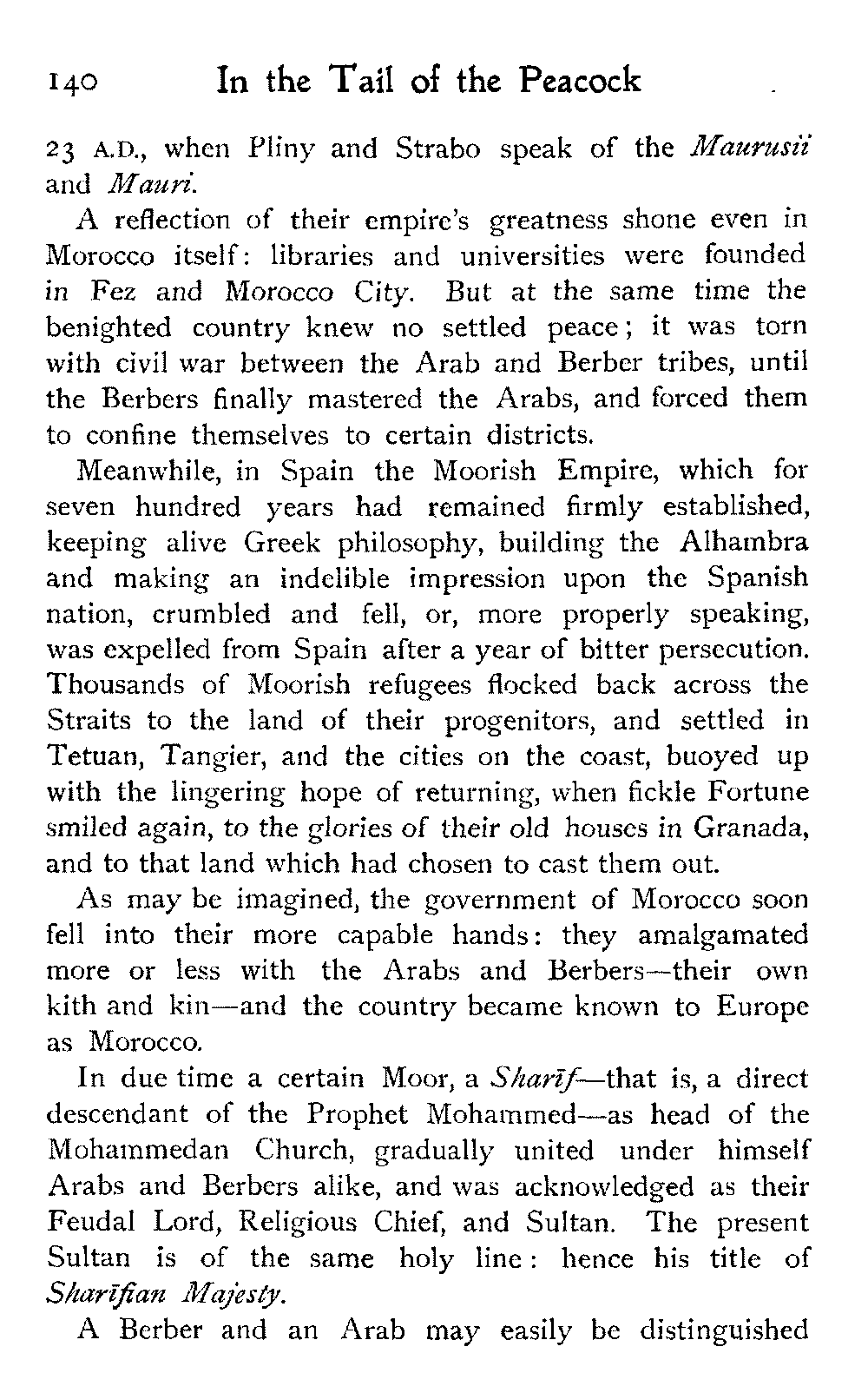 After all, argues the Moor, who could wish to alter Morocco? Is it not perfect as it is?—veritably, "the tail of the peacock," the sun of the universe!