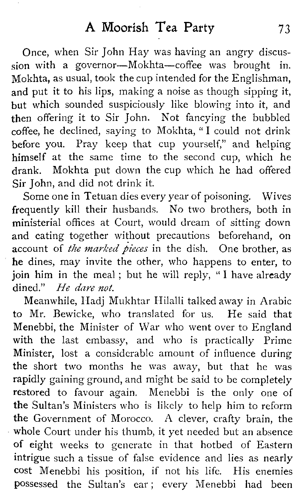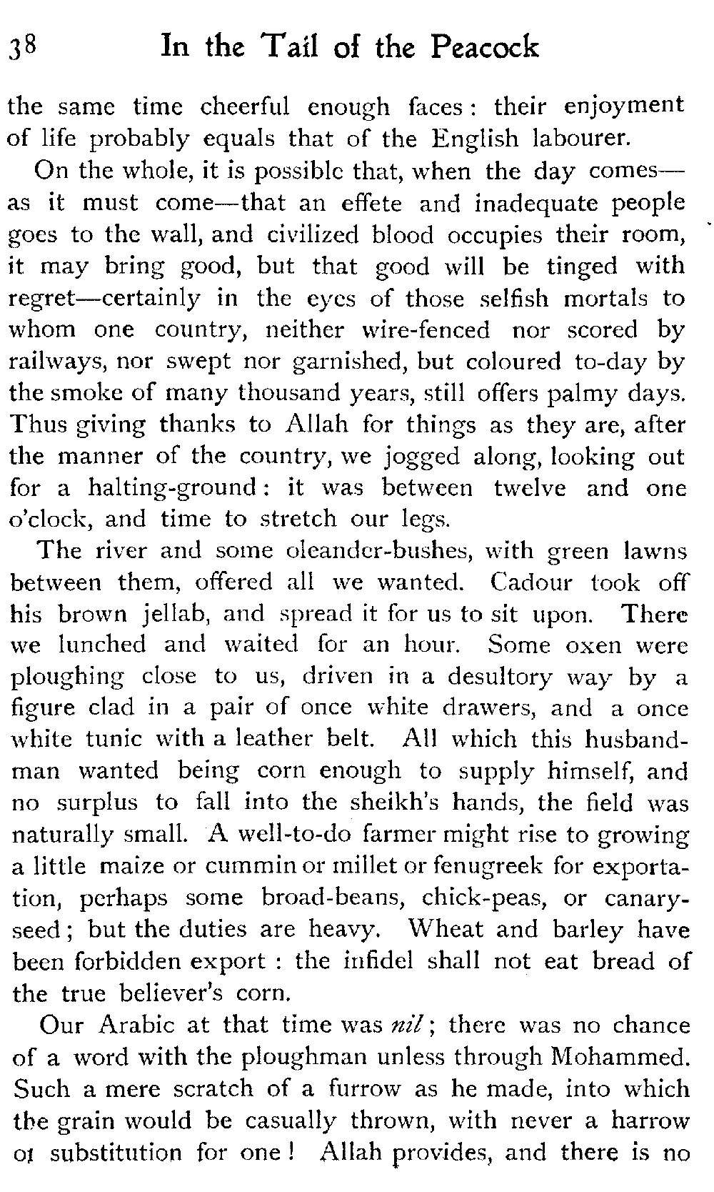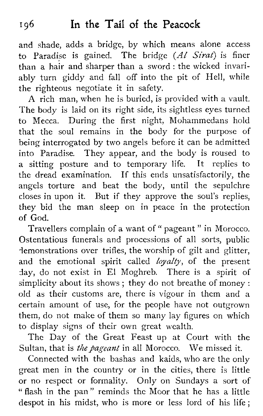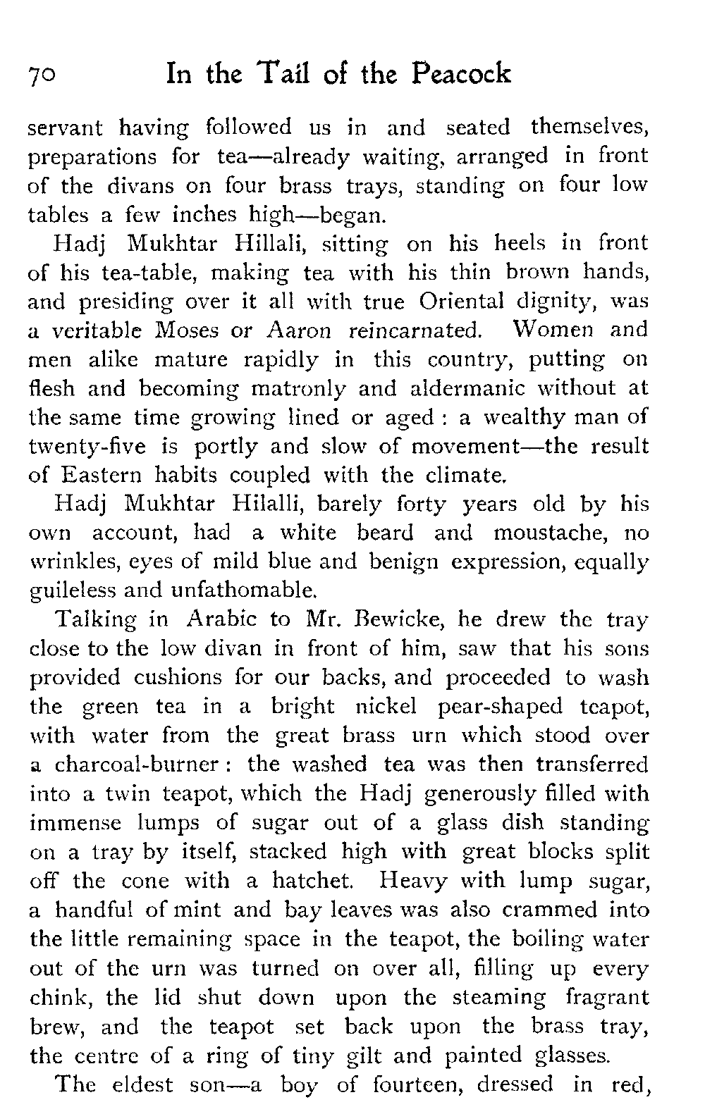 After all, argues the Moor, who could wish to alter Morocco? Is it not perfect as it is?—veritably, "the tail of the peacock," the sun of the universe!