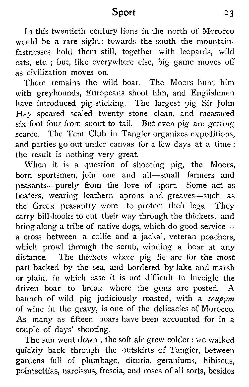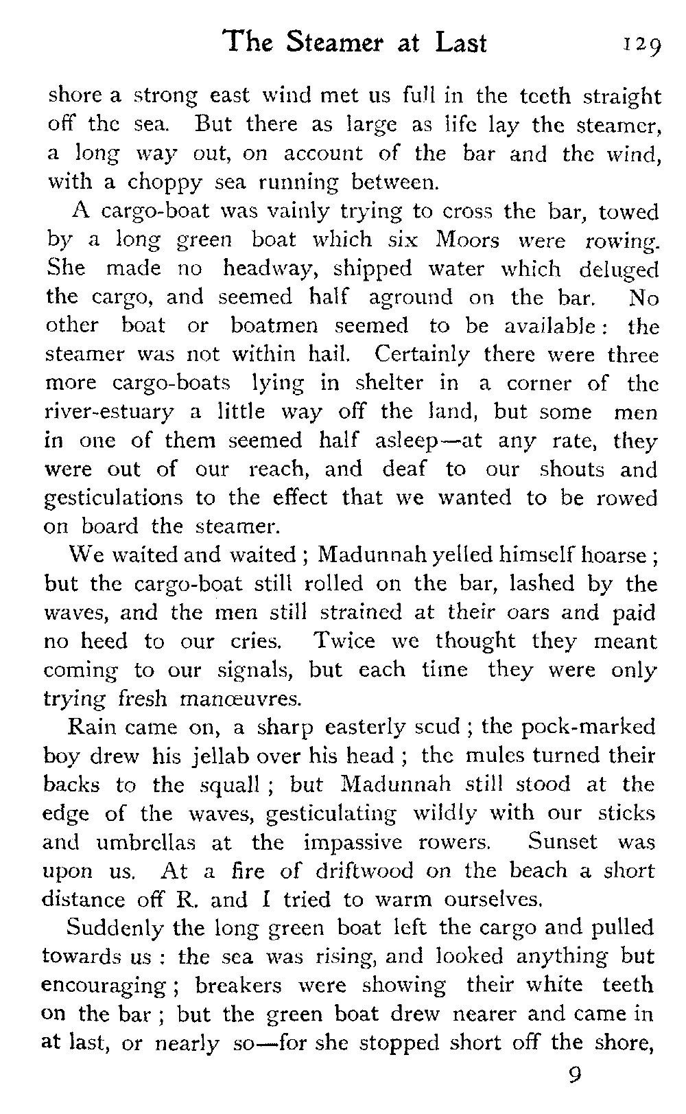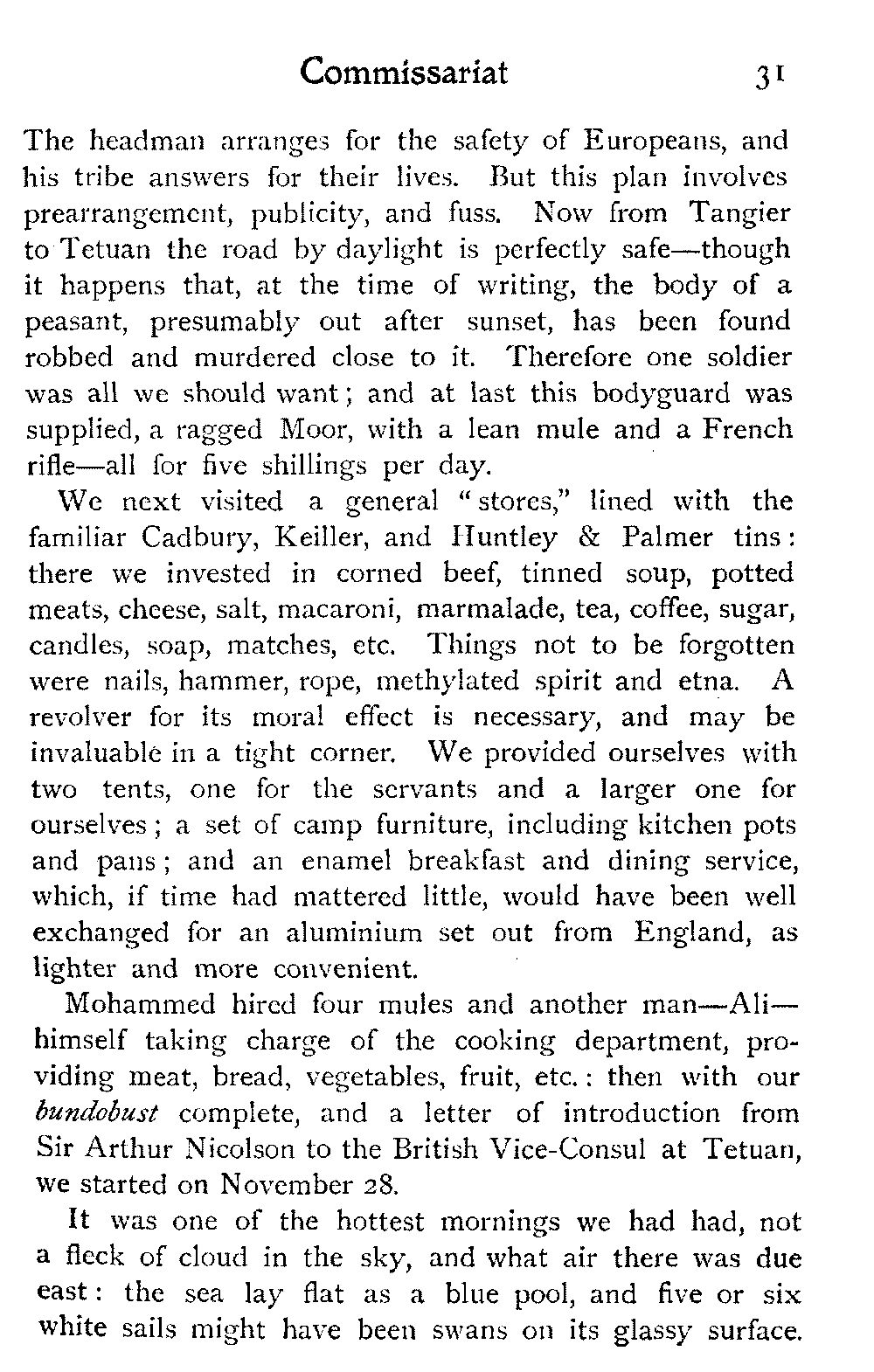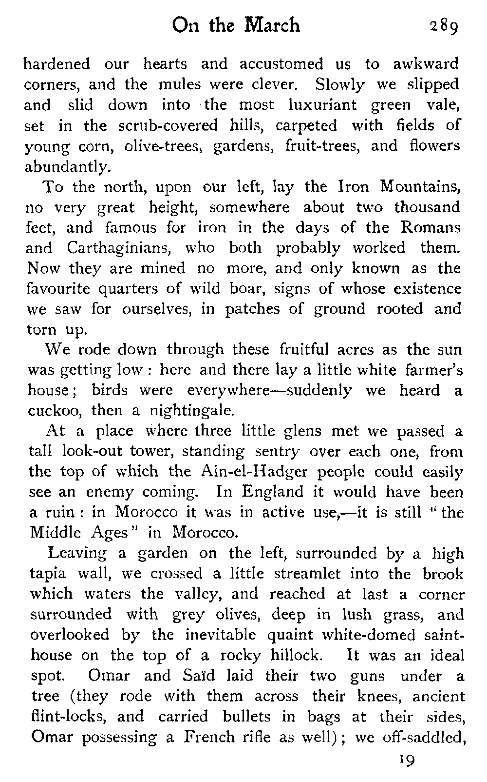Early one morning we set forth upon our last march, back again to the coast, by the track which leads eventually to Mazagan, a seaport some distance farther north than Mogador. Here we hoped to pick up a steamer, and proceed, viâ Tangier, across to Gibraltar,[347] where it would be possible to get a P. & O. boat and head for home.