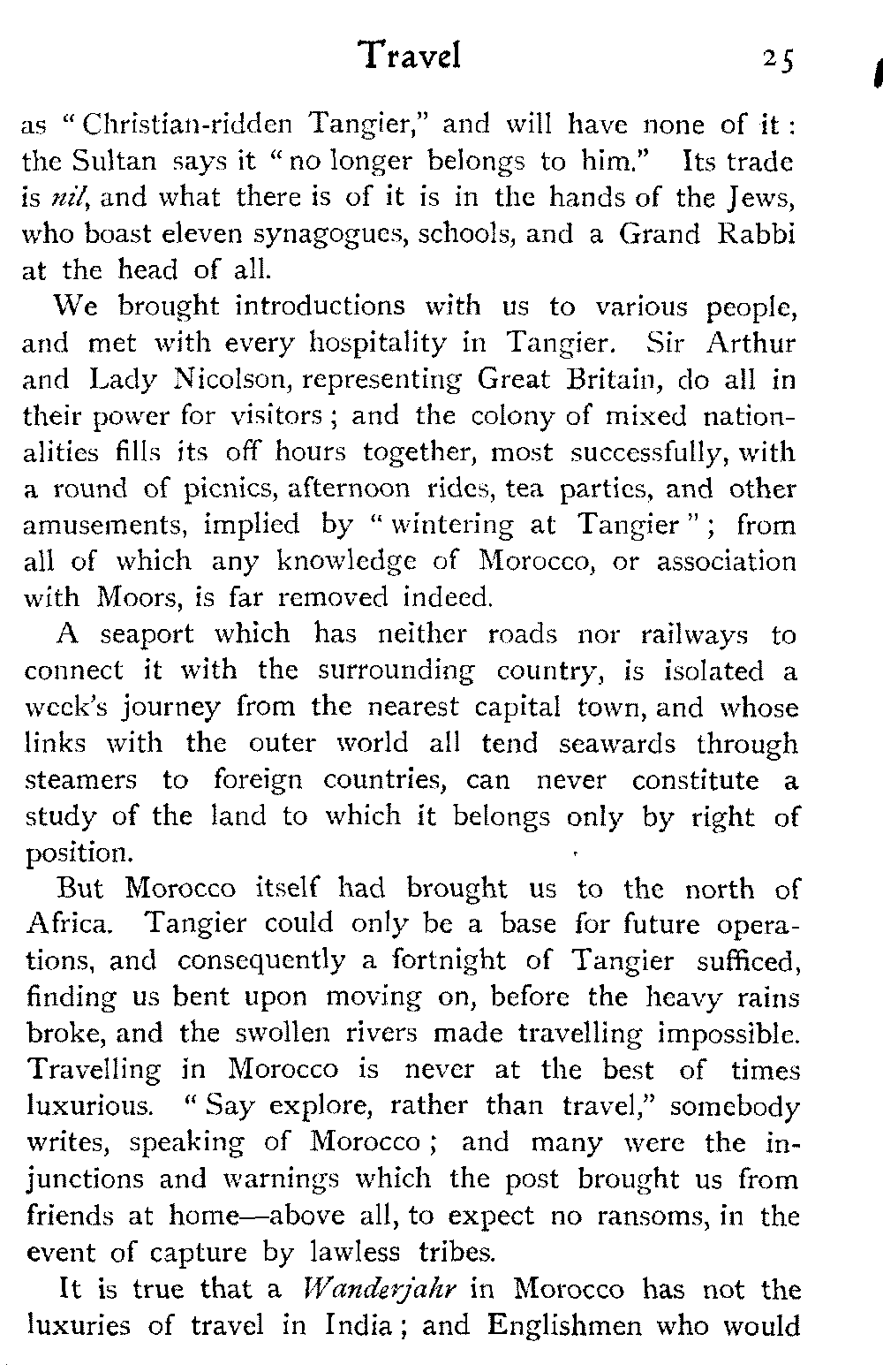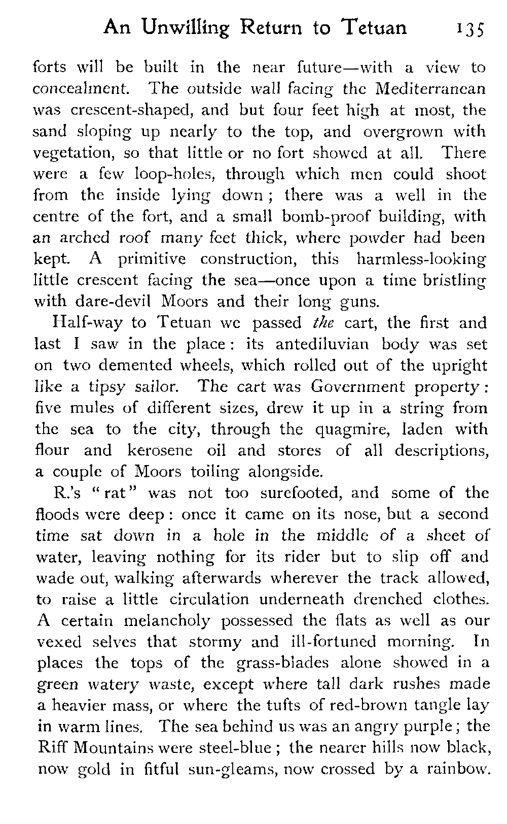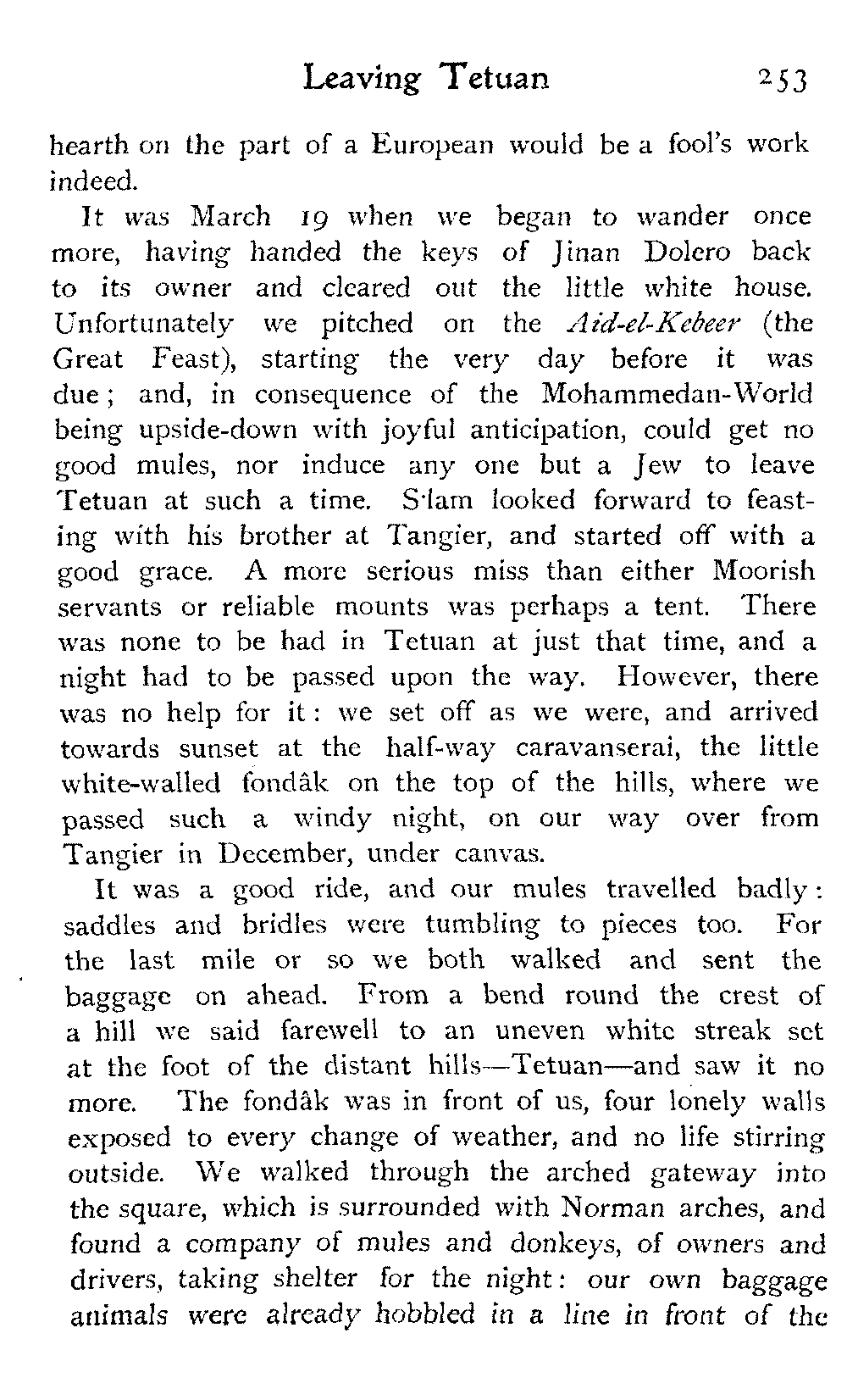 But for this year at any rate our travels in Morocco had reached their limit. R. was not strong enough to face more marching: the hot sun, long rides, and general "roughing it" had told upon her, and the responsibility of taking her on farther afield, into remote regions of uncertain climate, was too great.