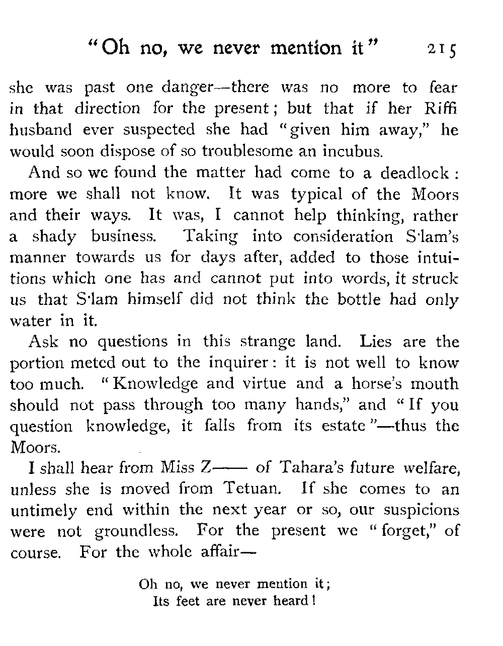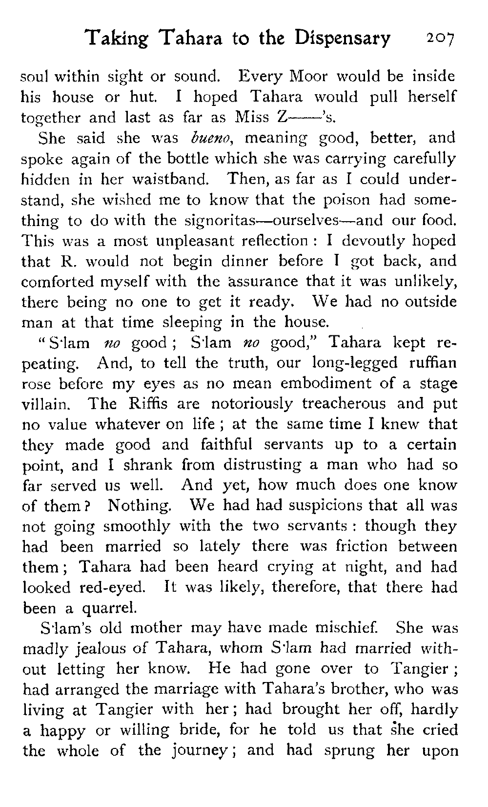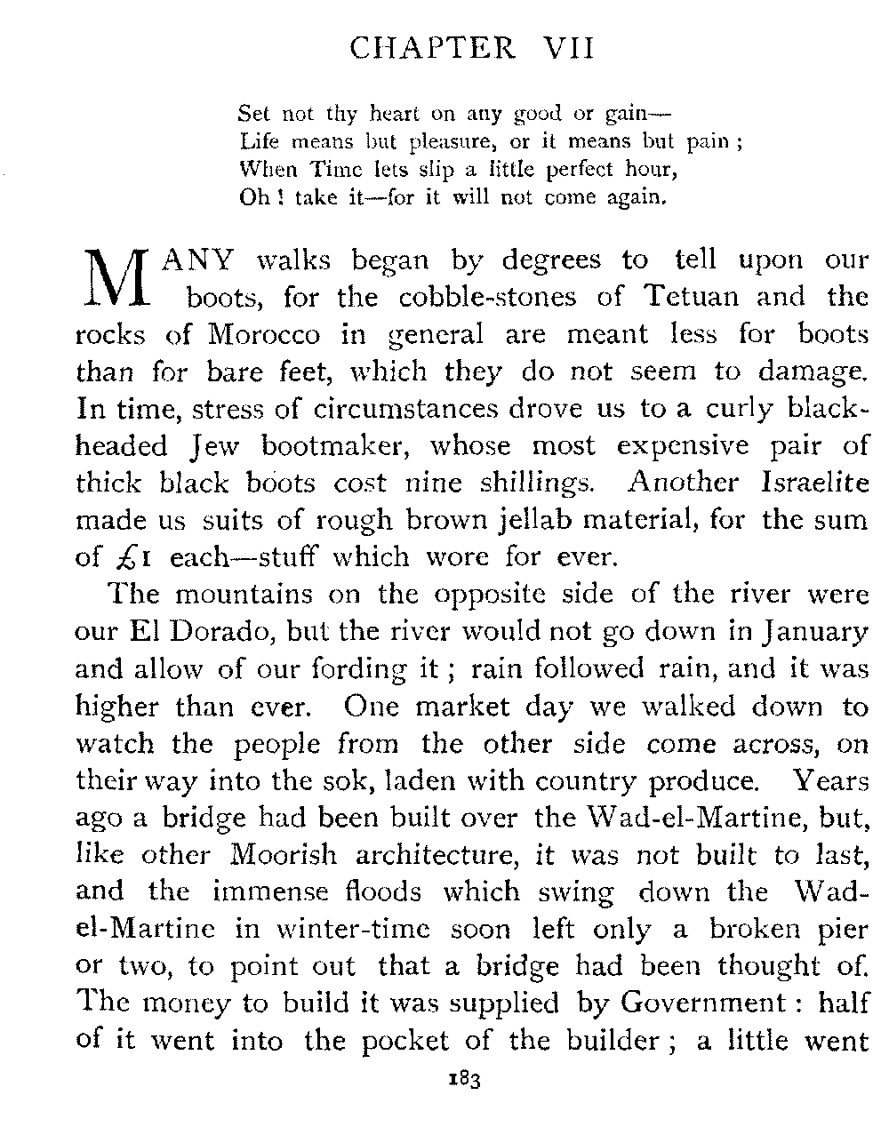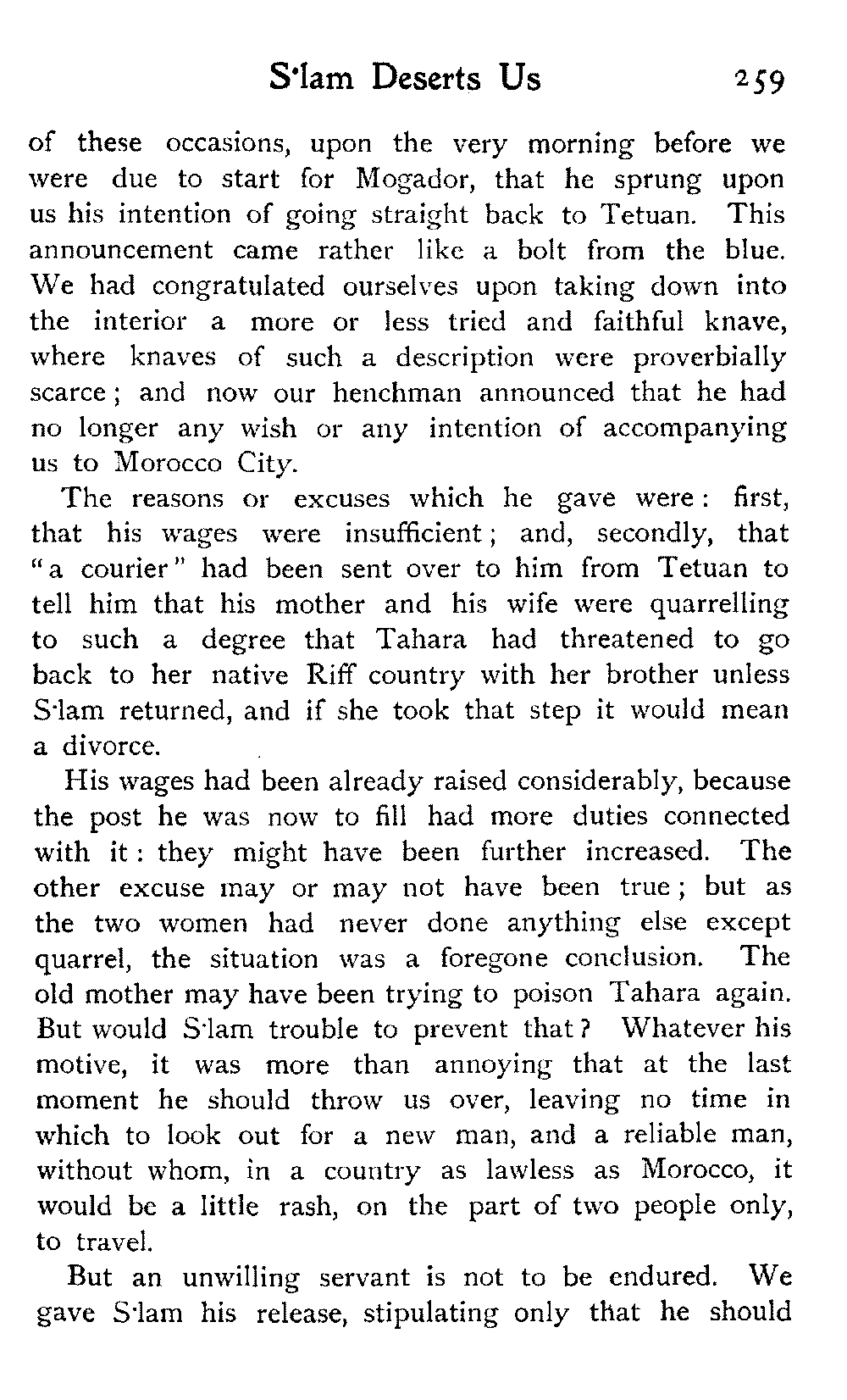 But for this year at any rate our travels in Morocco had reached their limit. R. was not strong enough to face more marching: the hot sun, long rides, and general "roughing it" had told upon her, and the responsibility of taking her on farther afield, into remote regions of uncertain climate, was too great.