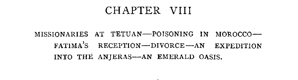 Chapter VIII | Missionaries at Tetuan—Poisoning in Morocco—Fatima's Reception—Divorce—An Expedition into the Anjeras—An Emerald Oasis | 217 |