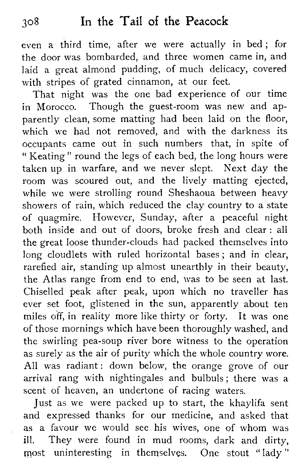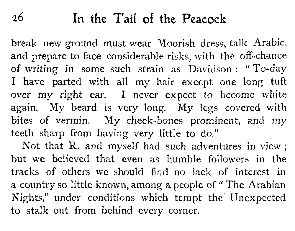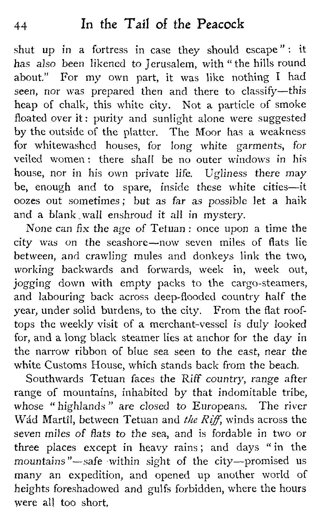 If a country has not been "read up" beforehand, the imagination has free play and forms many false conclusions: yet though it suffer on the one hand rude awakenings, it is on the other compensated by certain new lights—indelible and unique impressions—which come only in the train of things inconnu. So though we found no desert, there are other things in Morocco.