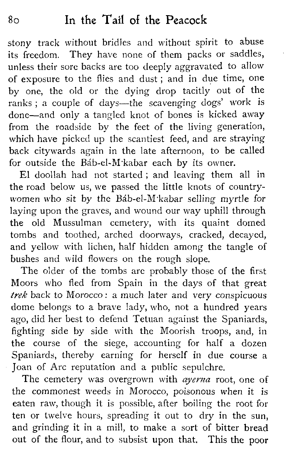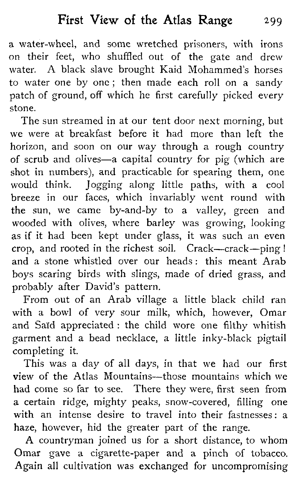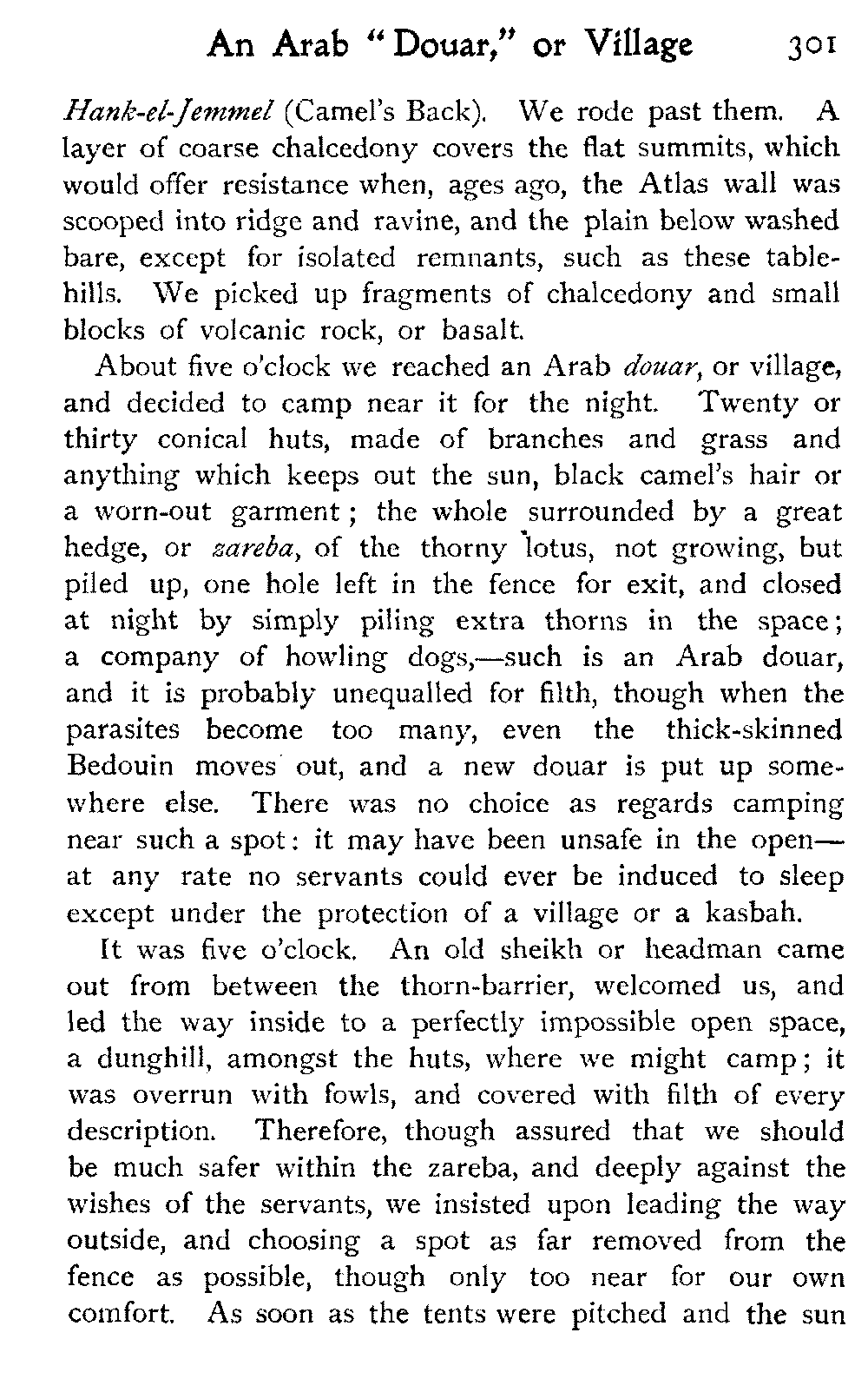 One of the few peaceful camping-grounds between Marrakesh and Mazagan was at a little distance outside an Arab village of about thirty little pointed thatched huts, enclosed within a zareba of thorn-bushes: it was called Smeera.