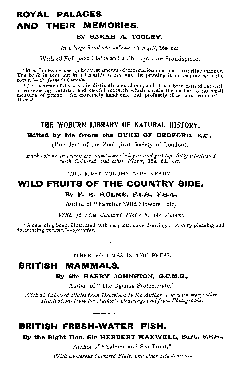 Each volume in crown 4to, handsome cloth gilt and gilt top, fully illustrated with Coloured and other Plates, 12s. 6d. net.