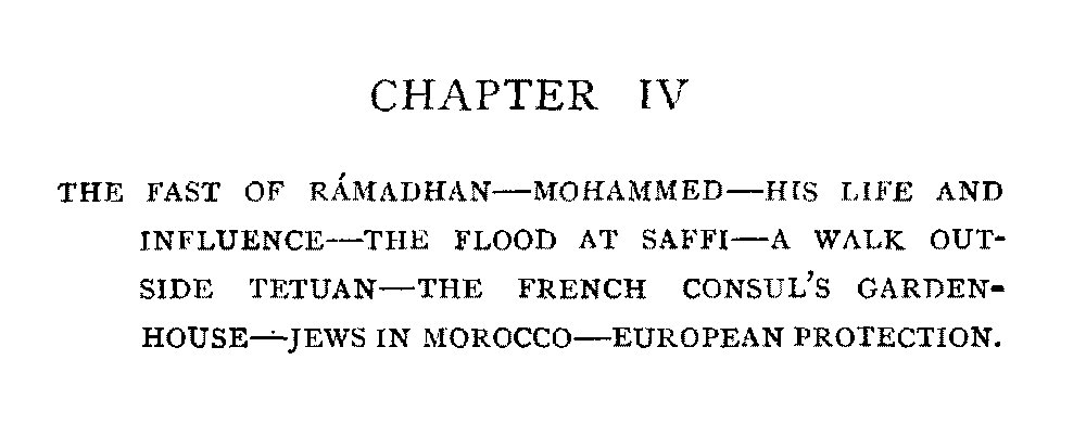 Chapter IV | The Fast of Rámadhan—Mohammed—His Life and Influence—The Flood at Saffi—A Walk Outside Tetuan—The French Consul's Garden-House—Jews in Morocco—European Protection | 97 |