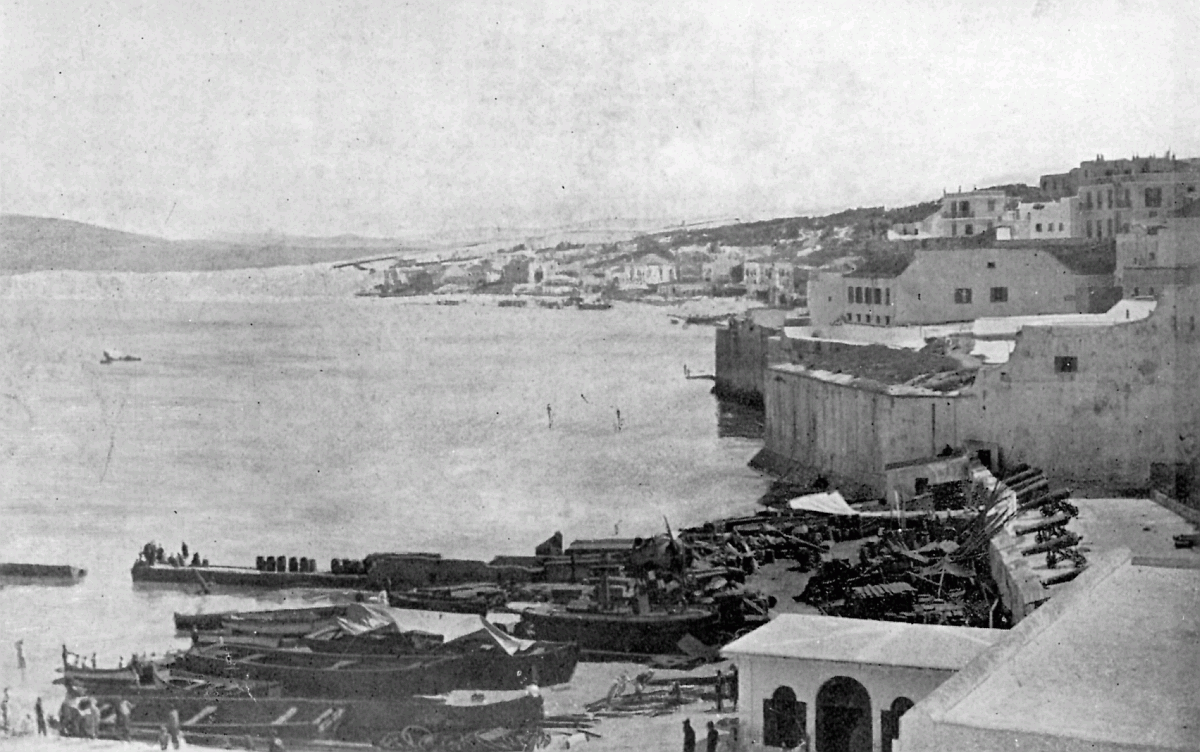 It was like a June morning at home, soft and balmy: the city dropped from us down to the beach, and the sun poured upon the flat-roofed houses, coloured yellow to pale cream or washed-out blue, alternating with a lavish coat of glaring whitewash.