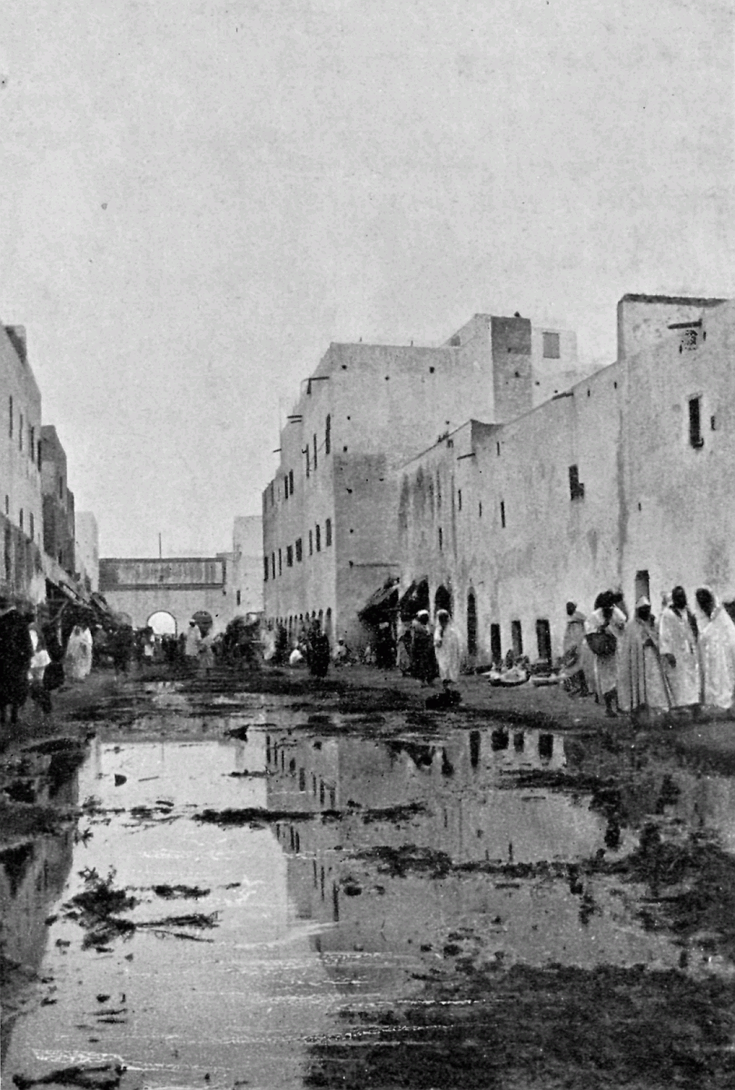 [4] The bare fringe alone of Morocco, its coast towns, and the choice, let us say, of two roads connecting them with its capitals, Fez and Morocco City, are open to travellers; beyond these limits it is difficult and dangerous for Europeans to venture. Of even its coasts towns England knows little enough: a daily paper printed in 1902 describes one flourishing seaport of thirty thousand inhabitants as "a village." There is more vagueness, in fact, about a country three times the size of Great Britain and four days' journey from London than of many a remote corner in the heart of Asia.