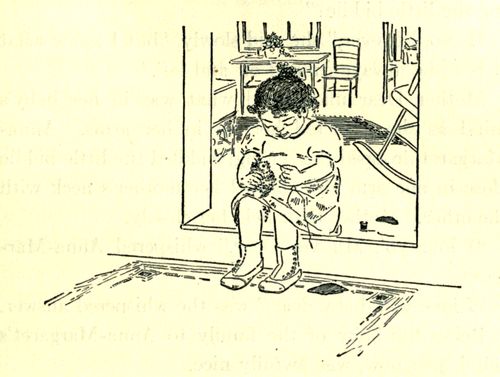 They make mud pies and play market, and tie the legs of May and June bugs to see them fly around and buzz. They love to play housekeeping. They are also trained to do some work, as bringing wood, sweeping or looking after the younger ones. There are no knives, forks or dishes to wash.