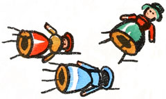 Il y avait aussi des chauffeurs cossus et de riches automobilistes. Leurs voitures étaient lancées à toute allure sur de grandes tables: mais, hélas! leurs pauvres têtes de porcelaine étaient à la merci d'un caillou qui se trouvait là, d'un chien mécanique qui passait devant eux, d'un virage mal pris.