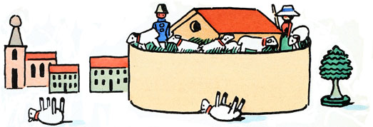 Parfois, les soldats de bois du petit garçon voisinaient, sur la table, avec la bergerie de la petite fille et Quillembois bavardait avec les bergers.