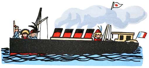 Tandis que le phonographe qui l'avait réveillé continuait sa musique, des chemins de fer à mécanique roulaient bruyamment sur les tables voisines, des poupées glapissaient «PPPA-PPA-MMMA-MMA». Quillembois voyait encore des mâts de navires, tandis qu'au-dessus de sa tête, des aéroplanes se poursuivaient sans pouvoir jamais se rattraper.