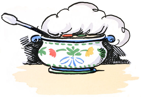 Il pensait bien pourrir là, lorsqu'un jour le chou fut cueilli pour être mis dans la soupe. Quillembois glissa dans la marmite, y resta toute la journée et fut retrouvé, le soir, à table, dans la soupière.